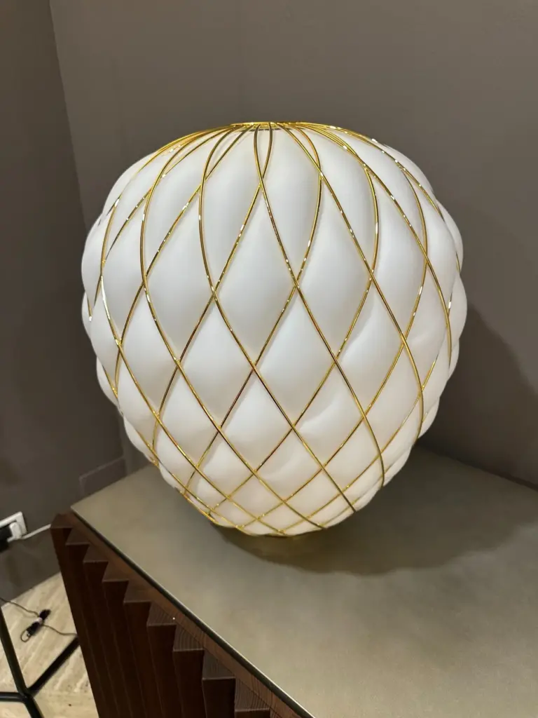 La Lampada da Tavolo Pinecone, progettata da Paola Navone per Fontana Arte, รจ una delle offerte esclusive selezionate da Primearredo dai migliori show-room e rivenditori di arredamento in Italia. Questa lampada rappresenta un connubio perfetto tra tradizione artigianale e design contemporaneo, offrendo un'eleganza sofisticata in qualsiasi ambiente.