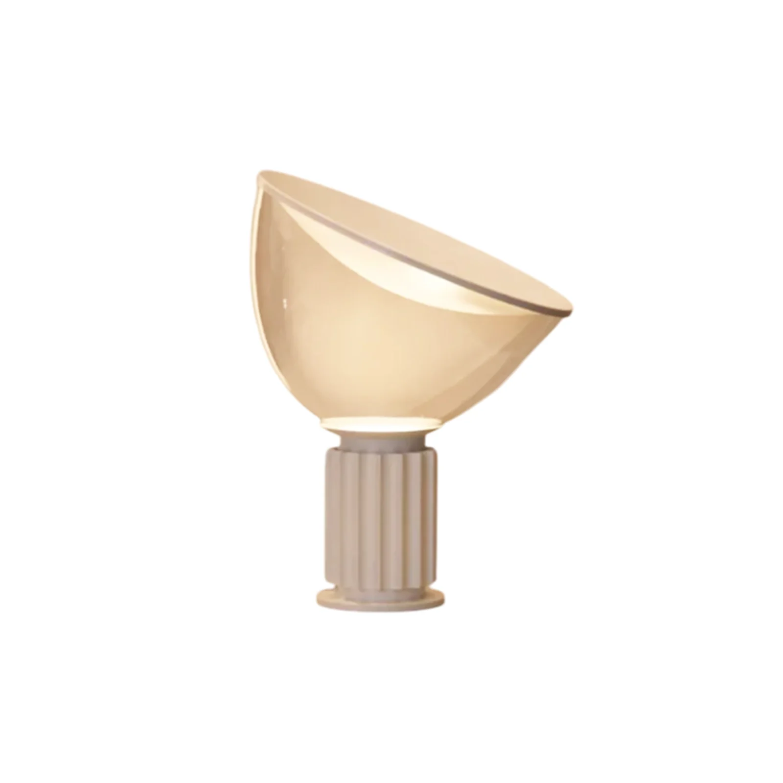 - Base: La base della lampada รจ realizzata in alluminio estruso, un materiale che non solo nasconde la sorgente luminosa ma funge anche da sistema di raffreddamento per la lampadina, aumentando la durata del prodotto. Lโaspetto della base ricorda quello di una colonna classica, che รจ diventato uno degli elementi iconici di questa lampada.