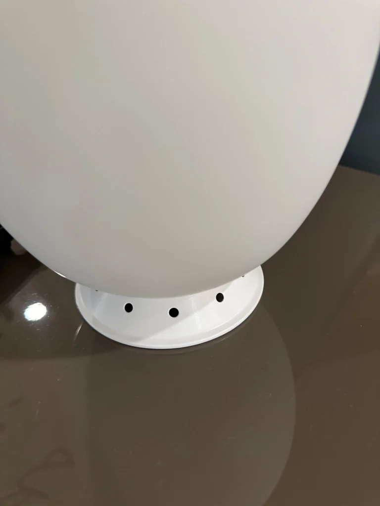 La lampada da terra Uovo, disegnata da Ben Swildens e prodotta da FontanaArte, รจ un'icona del design ironico ed elegante. In produzione dal 1972, questa lampada ha conquistato il successo grazie alla sua forma naturale e simbolica, che rappresenta la perfezione attraverso l'armoniosa convivenza di simmetria e asimmetria.