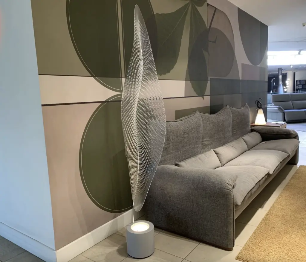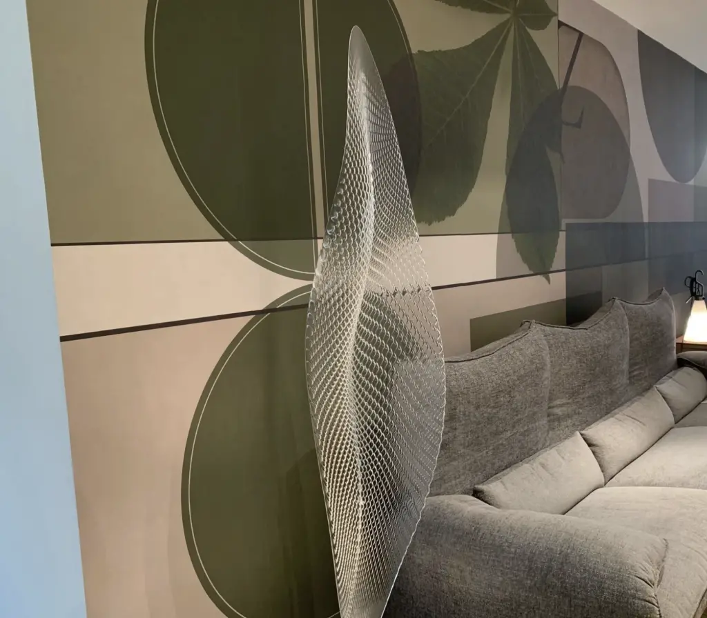 Cosmic Leaf รจ ideale come lampada da atmosfera o complemento scultoreo in salotti, hall o ambienti contract: la luce filtrata dal diffusore genera riflessi vibranti e dinamici, enfatizzando la materia e la forma.