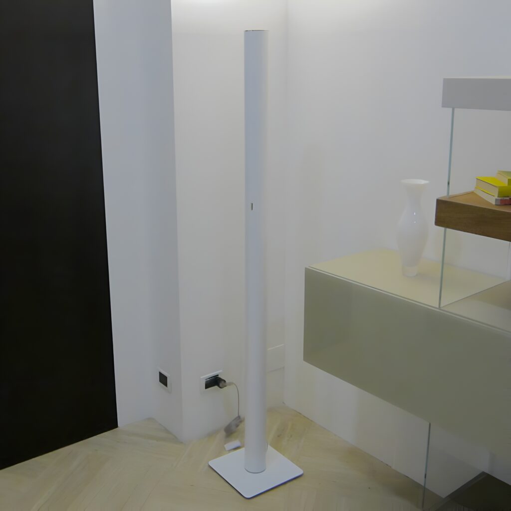 Ilio, disegnata da Ernesto Gismondi per Artemide, รจ una lampada da terra che incarna la semplicitร e la purezza geometrica. Il design minimalista e la struttura monolitica rendono questa lampada un elemento di forte impatto visivo, ideale per ambienti moderni e contemporanei.