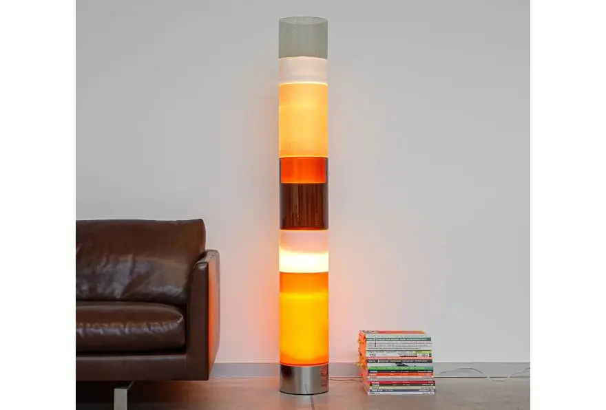 La struttura รจ realizzata in vetro soffiato a mano ed รจ composta da elementi cilindrici sovrapposti che creano un ritmo visivo armonioso. Al centro, inoltre, un diffusore interno con cinque strisce LED integrate assicura una luce uniforme, calda e avvolgente. In questo modo, lโilluminazione risulta ideale sia come luce dโaccento sia come elemento decorativo principale.