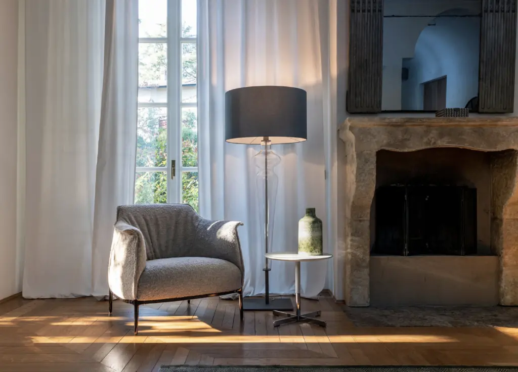 La lampada da terra Holly in dark blue gray, prodotta da Poltrona Frau, รจ una stilosa combinazione di design e... Leggi di piรน