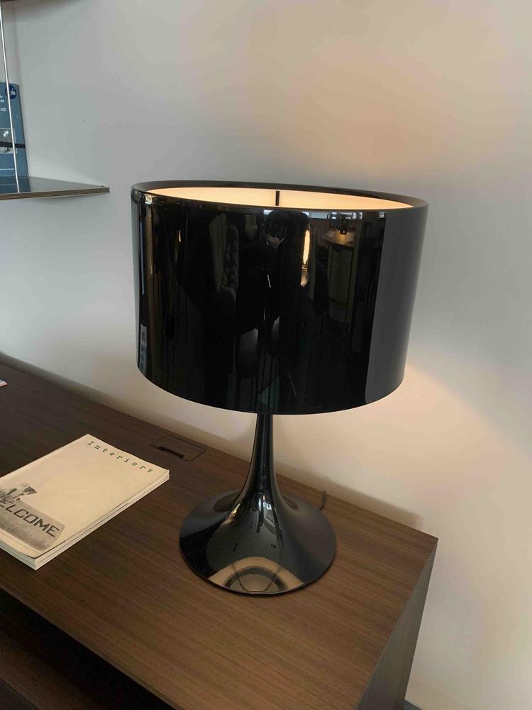 La Lampada Spun Light T1 unisce eleganza, design iconico e qualitร dei materiali. Realizzata in metallo verniciato nero con diffusore in vetro sabbiato, offre una luce diffusa morbida e raffinata, ideale per ambienti moderni e ricercati.