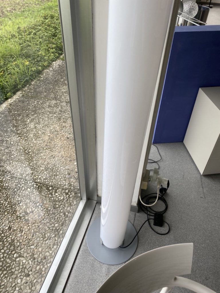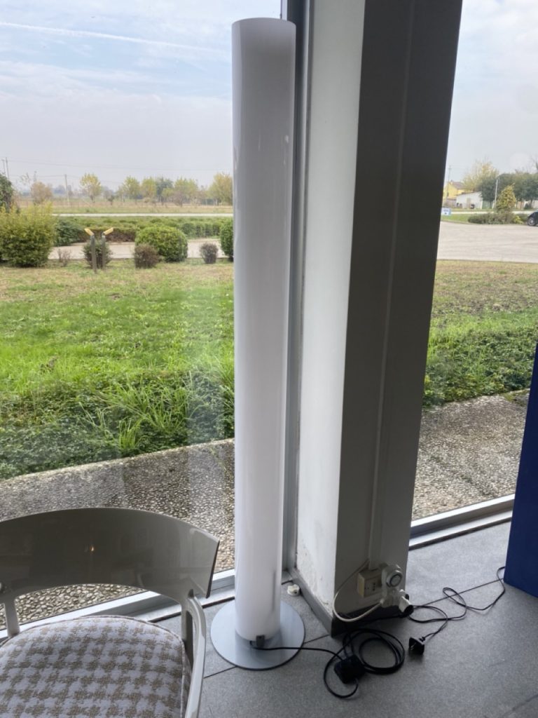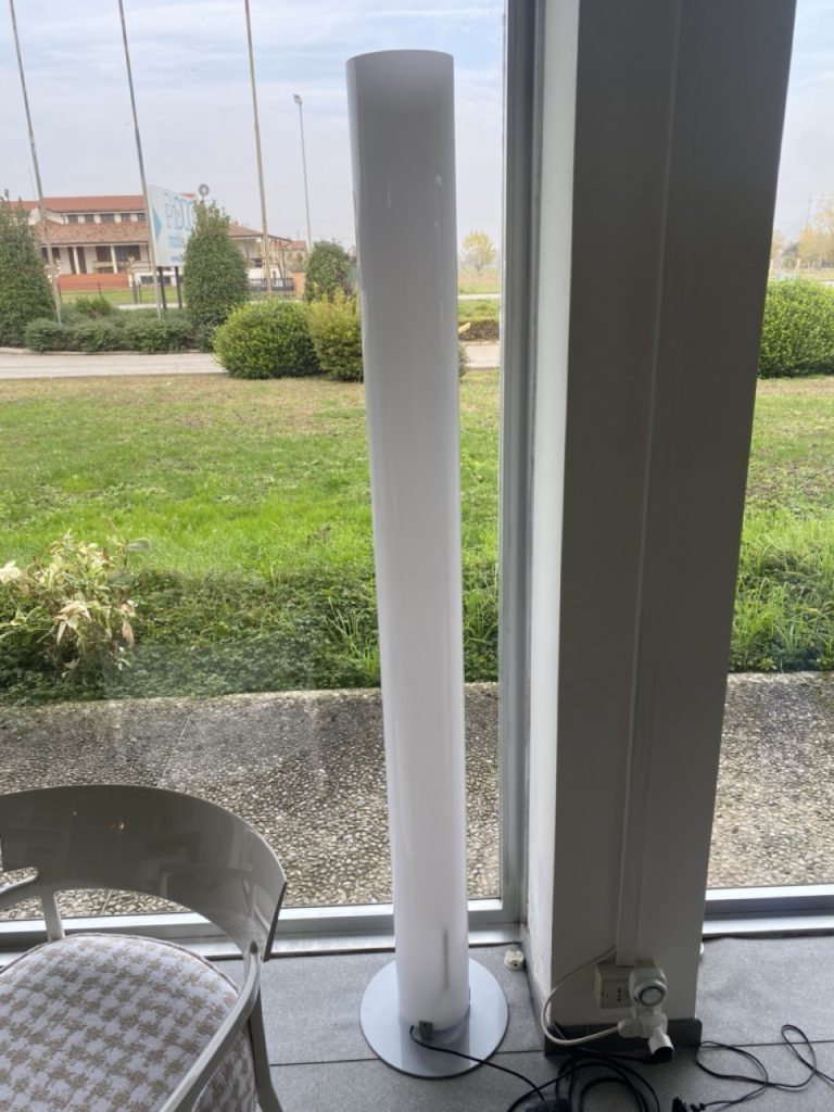 - Funzione di accensione: Le due sorgenti luminose alle estremitร del diffusore sono controllabili tramite doppio interruttore a pedale, montato sul cavo elettrico di alimentazione, per una comoda gestione della luce.