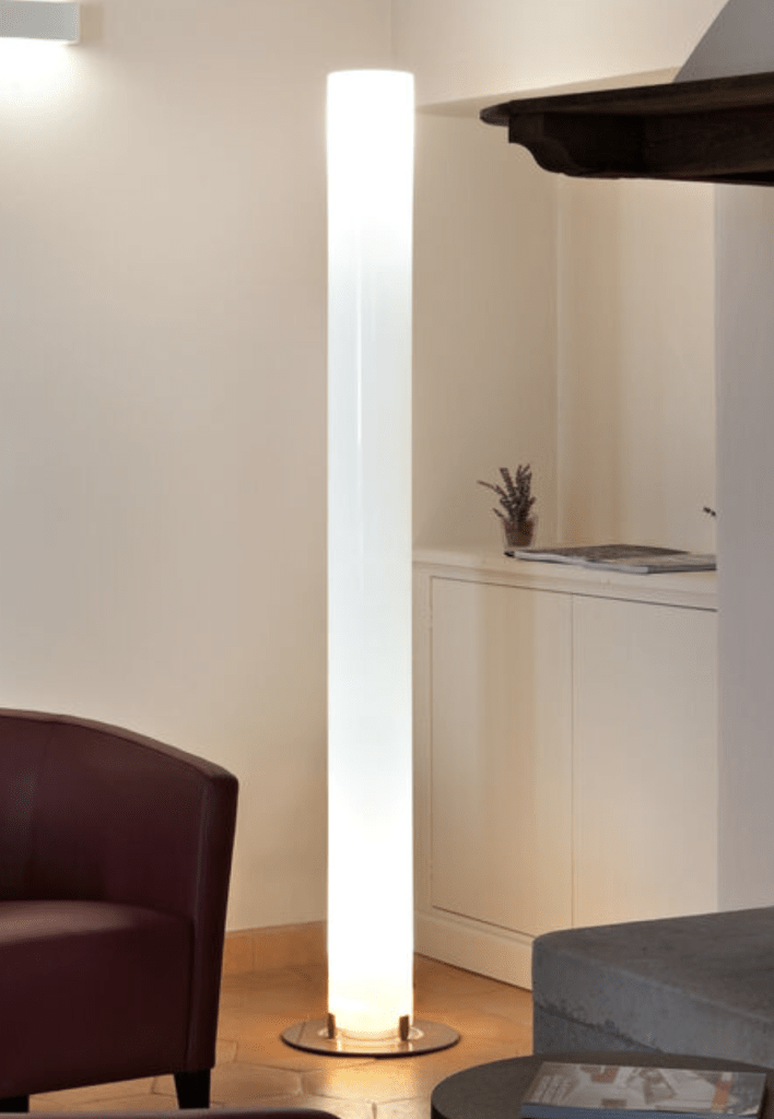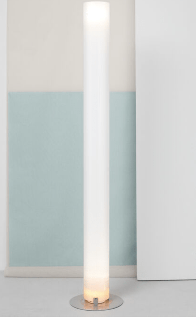 Questa lampada da terra รจ progettata per offrire un'illuminazione elegante e funzionale, caratterizzata da una base in acciaio verniciato argento a polvere e un diffusore cilindrico estruso in polimetilmetacrilato (PMMA) opalino. La sua luce indiretta e diffusa crea atmosfere morbide e accoglienti, perfette per qualsiasi ambiente.