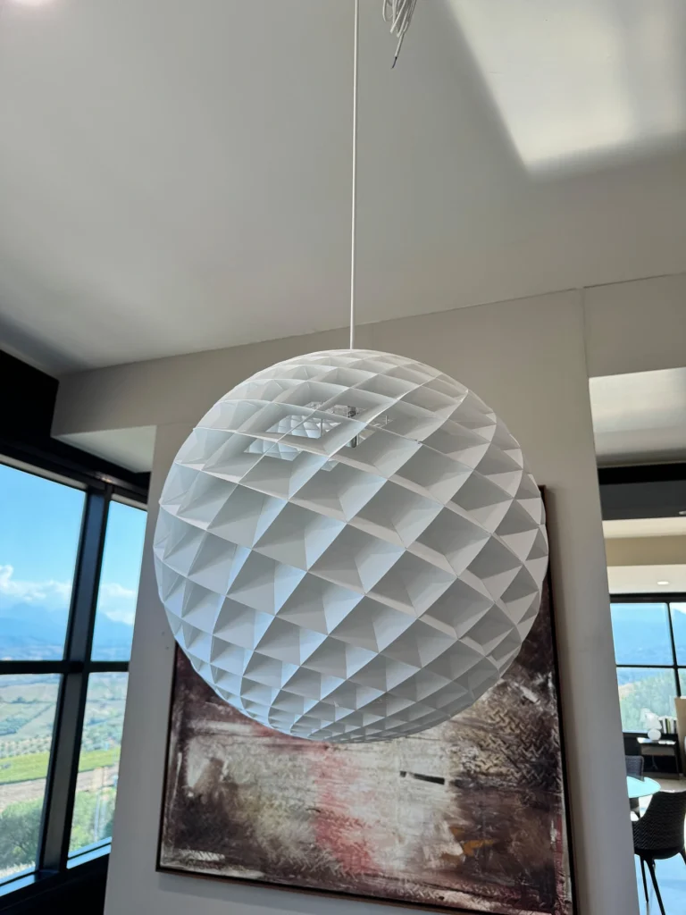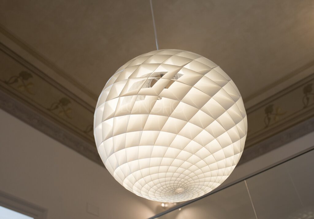- Le celle a diamante non solo diffondono la luce, ma formano una sfera luminosa che diventa un elemento decorativo protagonista.