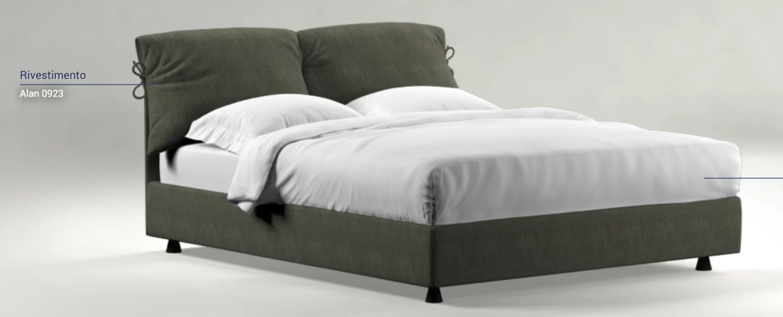 Il letto contenitore Nathalieย รจ la versione funzionale del celebre modello disegnato da Vico Magistretti. Considerato il primo letto tessile moderno, Nathalie รจ diventato unโicona intramontabile grazie ai suoi inconfondibili fiocchetti, alla linea morbida e alla completa sfoderabilitร . Il rivestimento in tessuto Alan 0923 categoria 1 esprime unโeleganza discreta, mentre le chiusure in velcro permettono di rimuovere ogni parte del tessile in modo semplice e pratico.