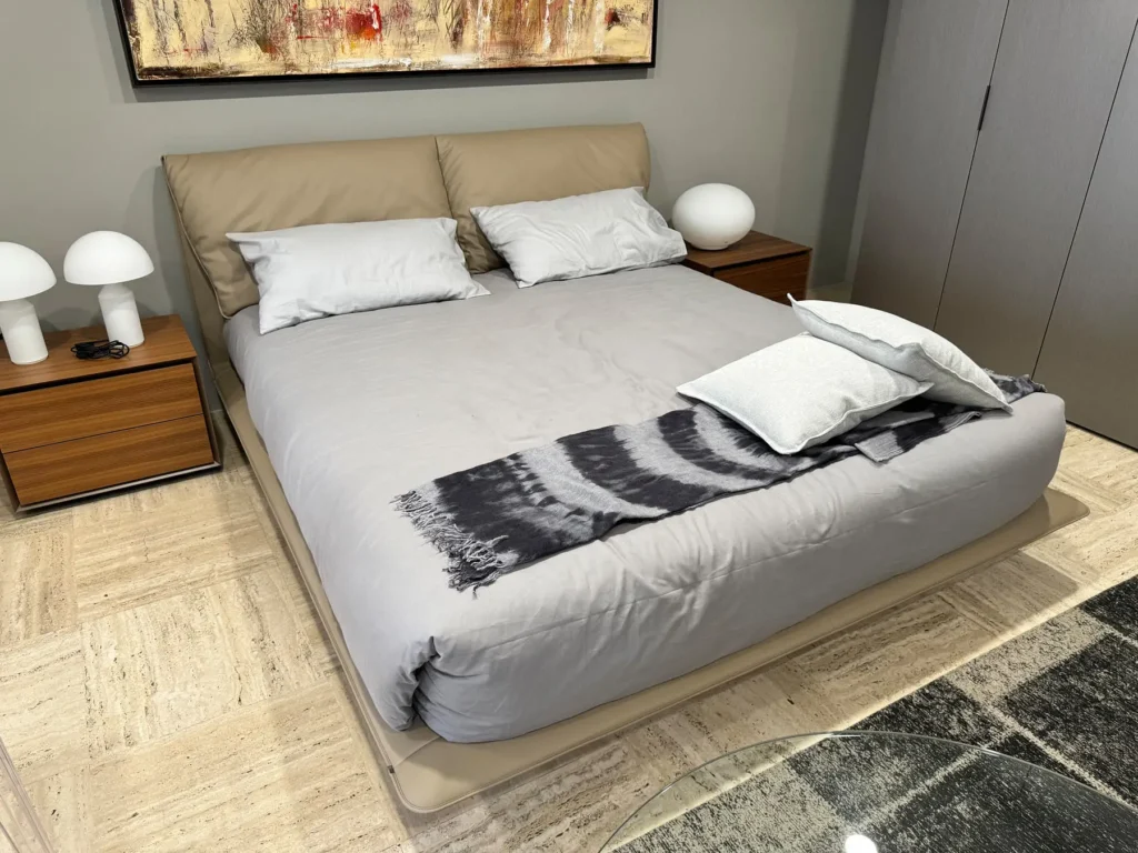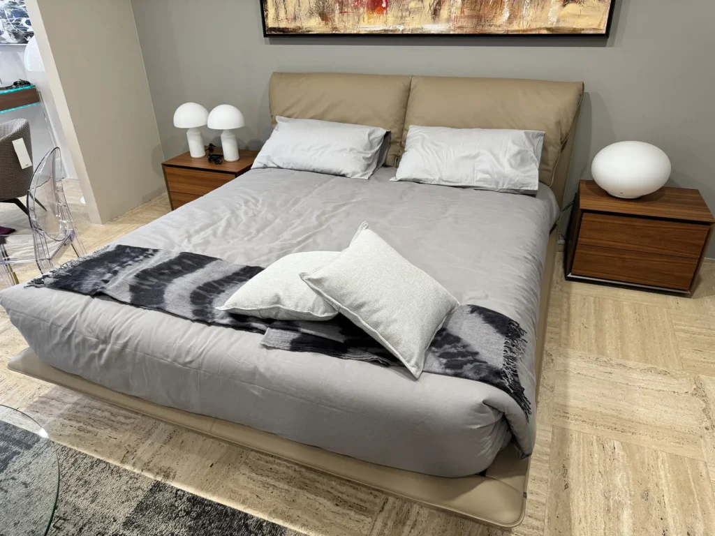 Il letto John-John, progettato da Jean-Marie Massaud per Poltrona Frau, รจ un capolavoro di design che unisce comfort e qualitร artigianale. Ispirato al celebre divano omonimo, il letto John-John รจ caratterizzato da un design pulito e da finiture di alto pregio, tipiche del brand italiano. La sua testata, con i grandi e confortevoli cuscini, richiama il caratteristico schienale del divano, con eleganti giochi di pieghe che esaltano la tattilitร della Pelle Frauยฎ.