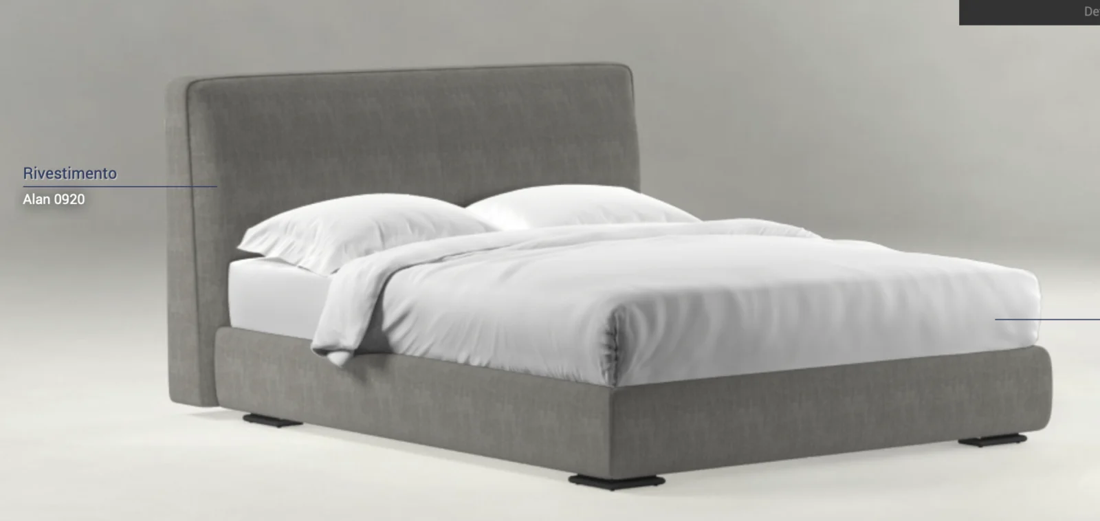 La struttura offre proporzioni equilibrate e un design contemporaneo, ideale per chi desidera un letto accogliente e visivamente importante. I piedini cilindrici brunito opaco completano lโ€™insieme con un dettaglio sobrio e sofisticato.