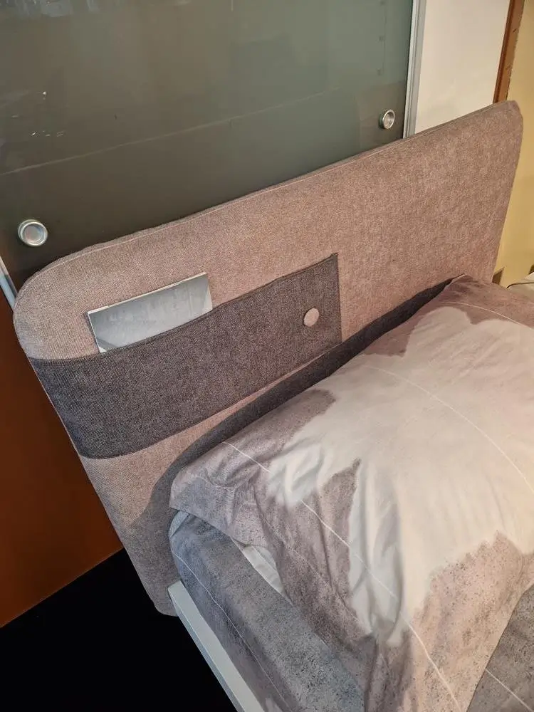 Elegante letto singolo ideale per i ragazzi di oggi, dotato di una pratica tasca porta tablet o telefono. Realizzato con tessuto cotone tortora e brown, il letto รจ in perfette condizioni ed รจ completo di rete a doghe ortopediche in faggio e materasso a molle gran riposo di prima qualitร , garantendo un comfort eccellente per il riposo.