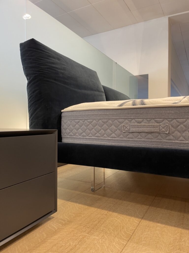 La collezione Scarlett รจ rinomata per i suoi cuscini "dinamici" alla testata, che possono essere reclinati in modo indipendente per adattarsi alle esigenze personali, come leggere, guardare la TV, fare colazione o usare il computer. Il dettaglio del piedino in plexiglass conferisce al letto un aspetto quasi sospeso, aggiungendo un tocco di eleganza e modernitร .