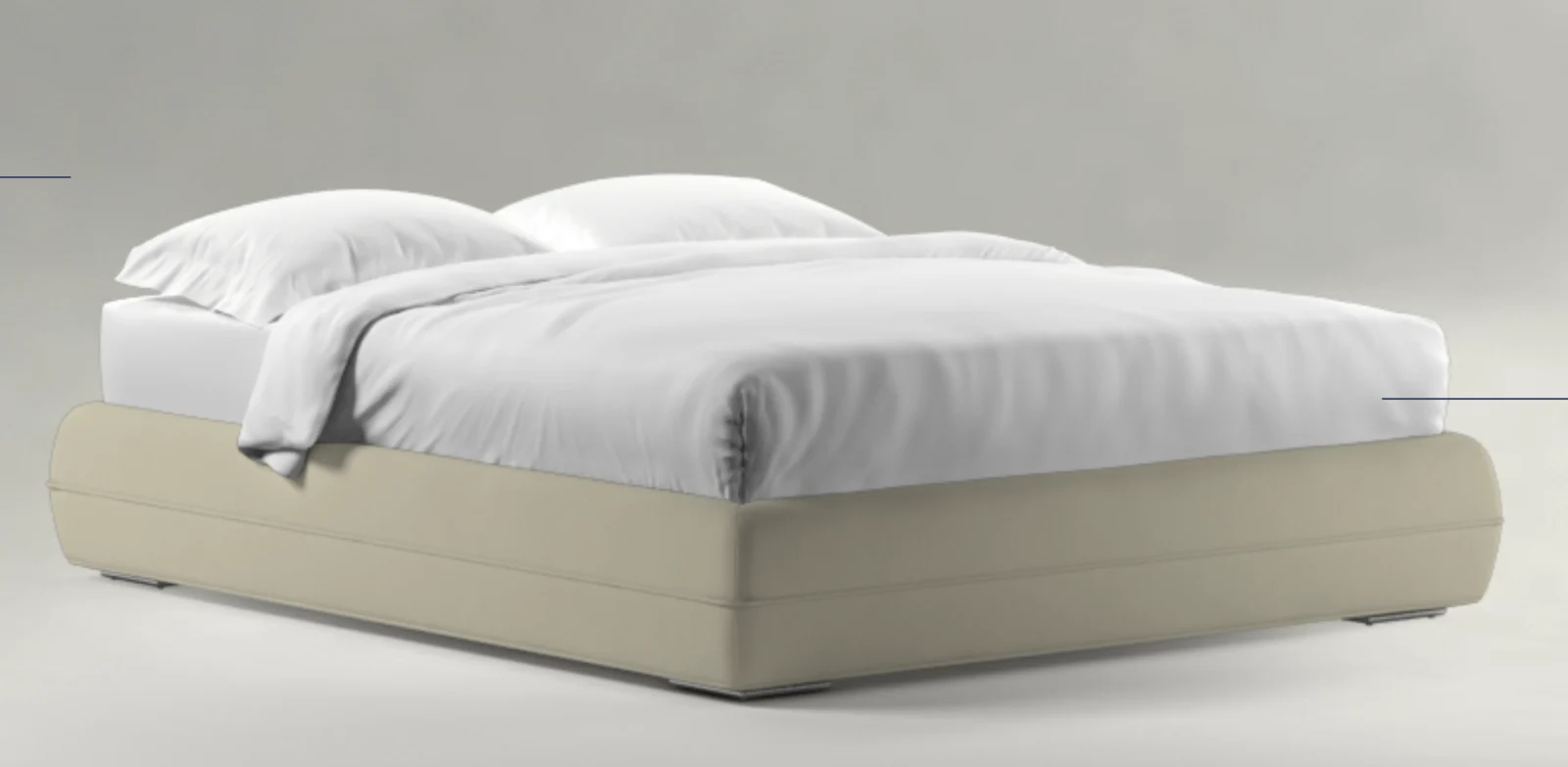 Il letto รจ disponibile a stock e imballato come da fabbrica. Il rivestimento รจ in tessuto sfoderabile Brian Greige cat. 5, una finitura elegante e facile da abbinare. La base, alta 39 cm, dona al sommier una presenza importante, mantenendo perรฒ un aspetto leggero e ordinato grazie alla cucitura a cordonetto che percorre tutto il perimetro.