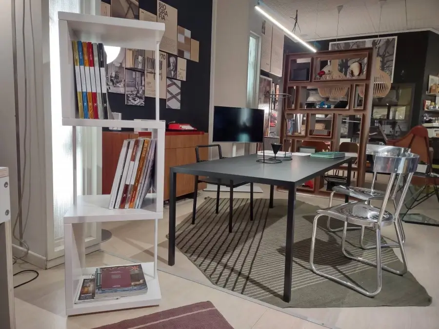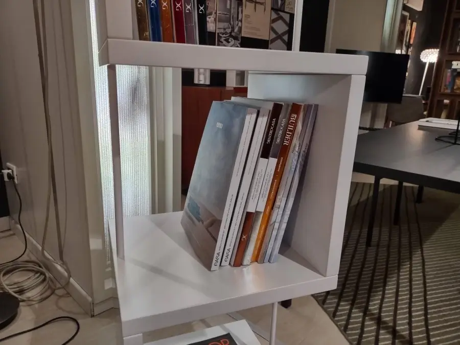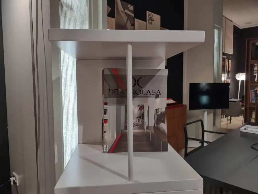 Cobra รจ una libreria girevole dal design dinamico ed elegante. La sua struttura permette di configurarla in differenti posizioni e spazi, rendendola un complemento d'arredo versatile. Ideale per aggiungere un tocco di stile contemporaneo a qualsiasi ambiente.
