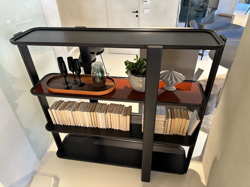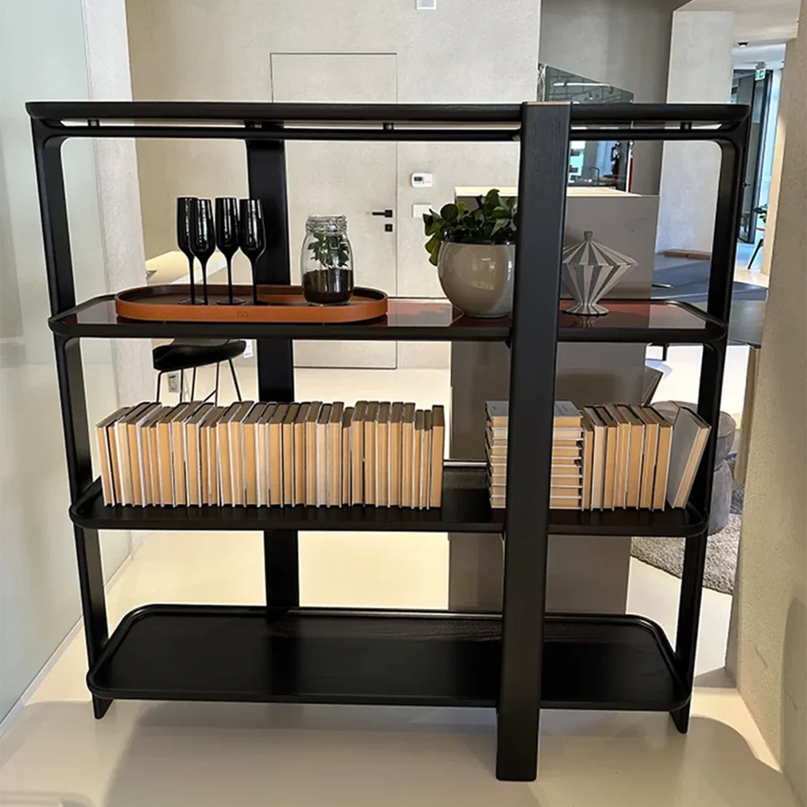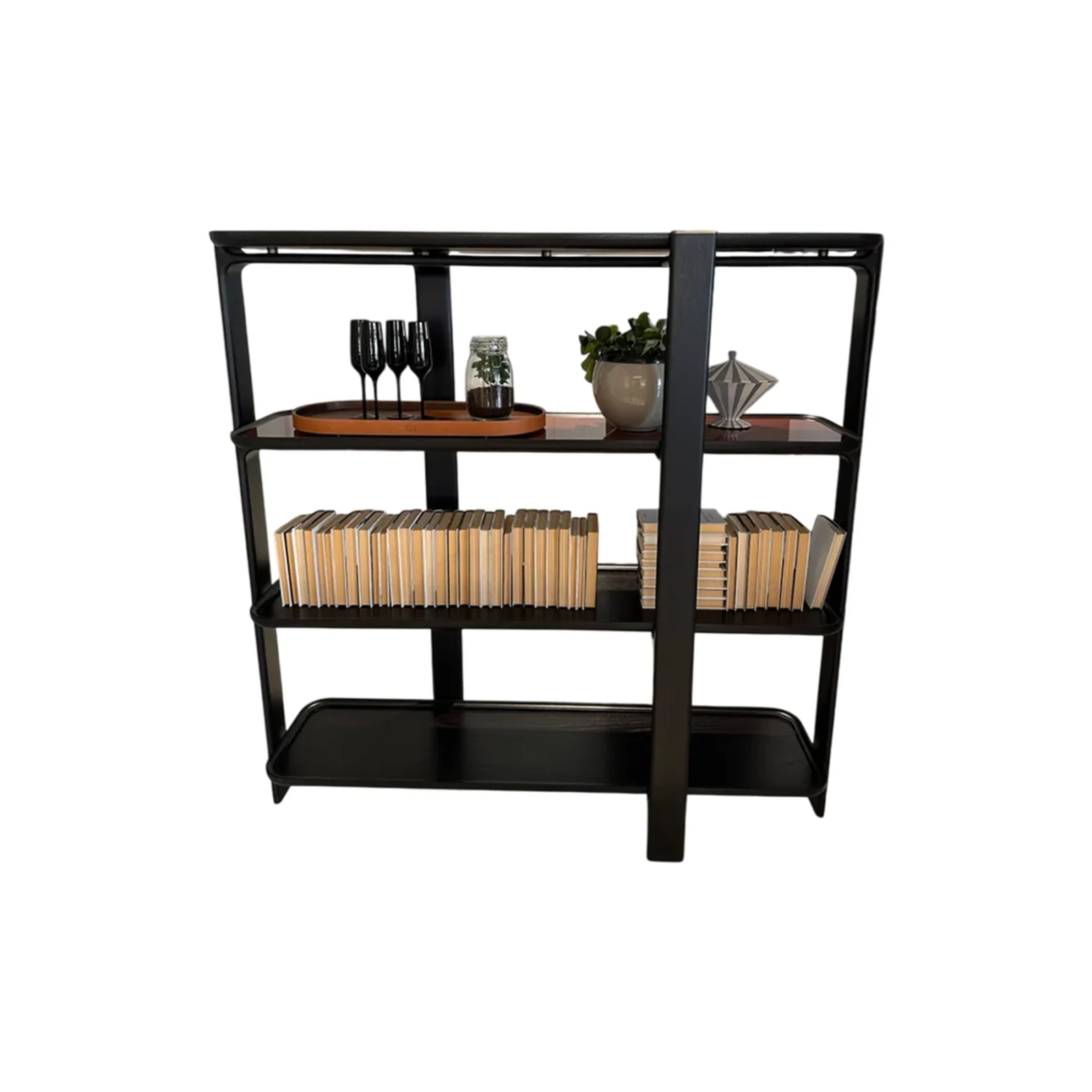 La struttura della libreria Duo รจ realizzata in multistrato di pioppo impiallacciato frassino, disponibile in diverse finiture, mentre i ripiani presentano angoli smussati e un fondo impiallacciato in frassino coordinato.ย I dettagli metallici, rifiniti in bronzo sfumato, donano un aspetto ancora piรน elegante e ricercato. Disponibile nella versione aย quattro ripiani, la libreria Duo, con i suoi montanti sfalsati, รจ un pezzo versatile che si inserisce armoniosamente in ambienti contemporanei, evocando unโestetica ispirata allโItalian Style anni โ50.