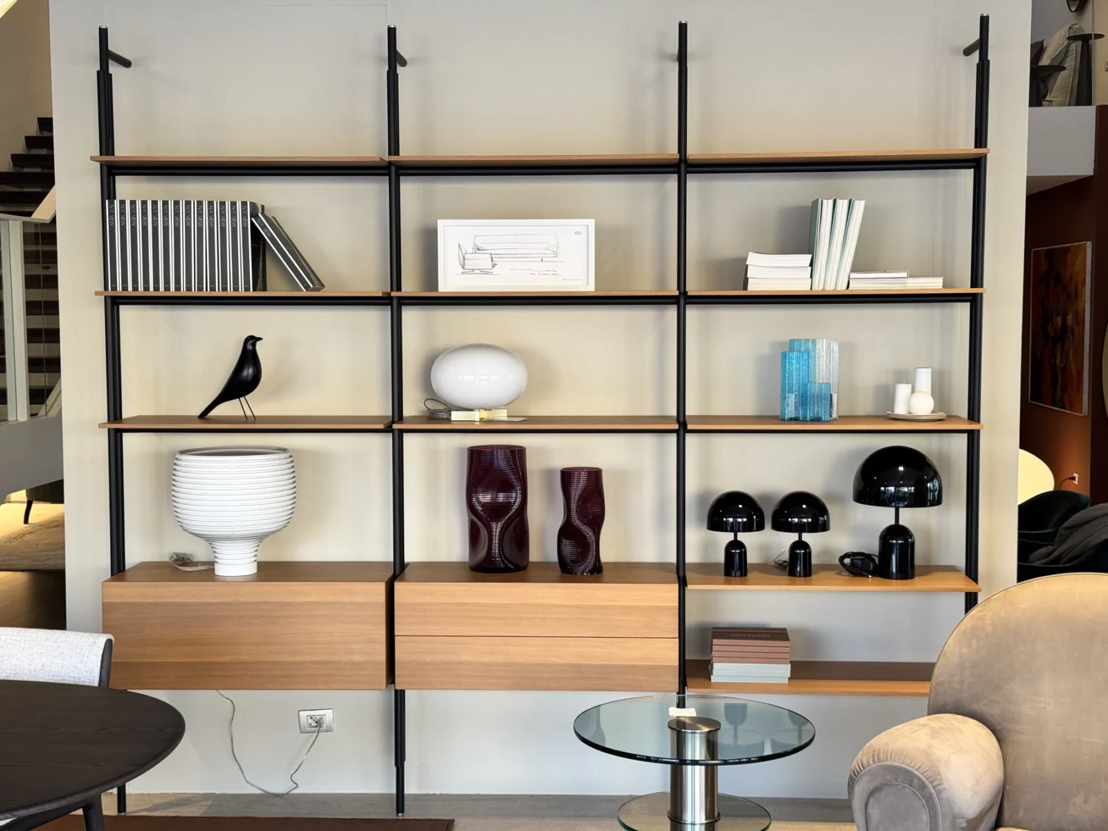 La Libreria Jack รจ un sistema di arredo elegante e versatile, progettata da Michael Anastassiades per B&B Italia. Ispirata agli anni Cinquanta, questa libreria rappresenta una fusione perfetta tra minimalismo, tecnologia e eleganza. La struttura essenziale nasconde gli elementi ingegneristici di supporto, tra cui i meccanismi di fissaggio e le regolazioni telescopiche pavimento-soffitto, garantendo un look pulito.