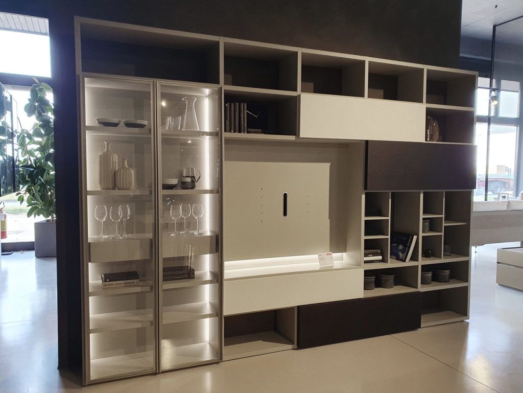 La parete attrezzata Lampo di San Giacomo รจ una scelta sofisticata per trasformare il soggiorno in uno spazio ordinato e accogliente.