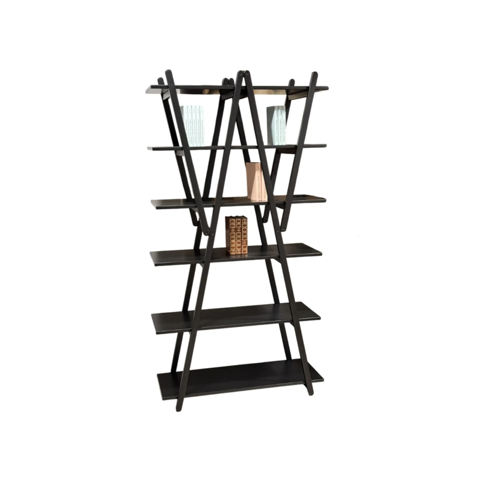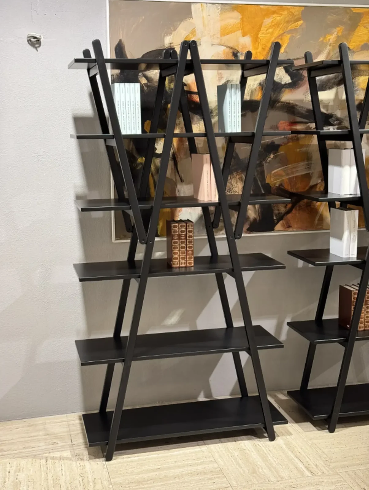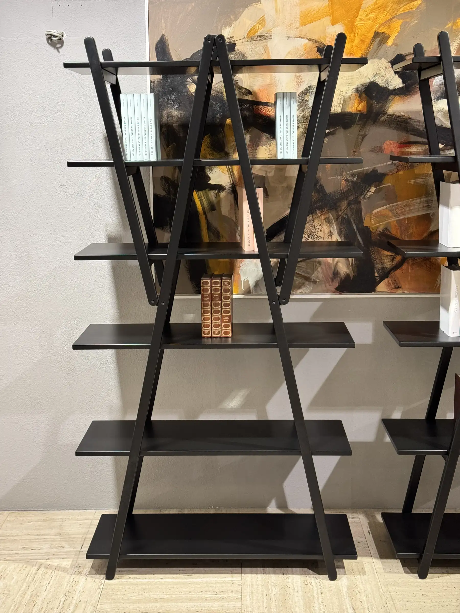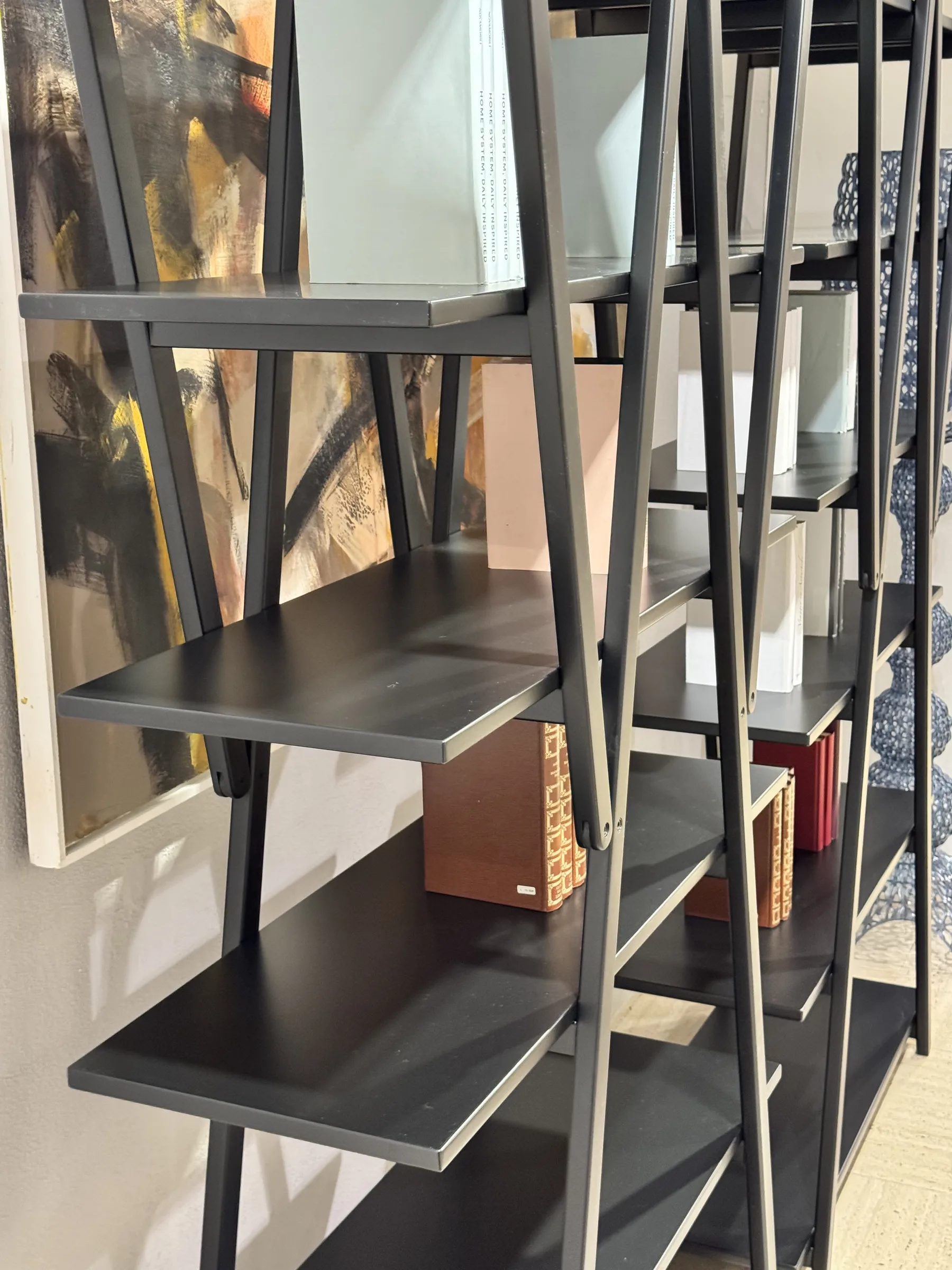 Laย finitura laccato neroย accentua il carattere grafico del progetto, valorizzando le linee incrociate della struttura e conferendo al complemento un aspetto deciso e sofisticato. Lโestetica pulita e senza tempo rende la libreria perfetta per ambienti moderni, studi professionali e spazi di rappresentanza.