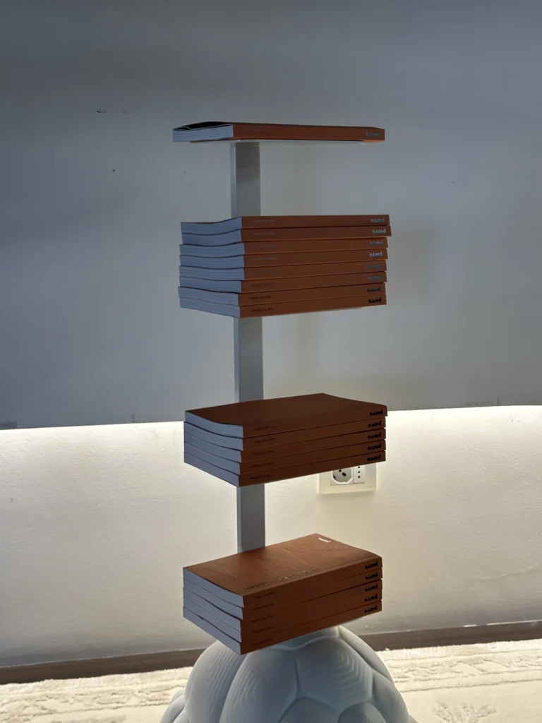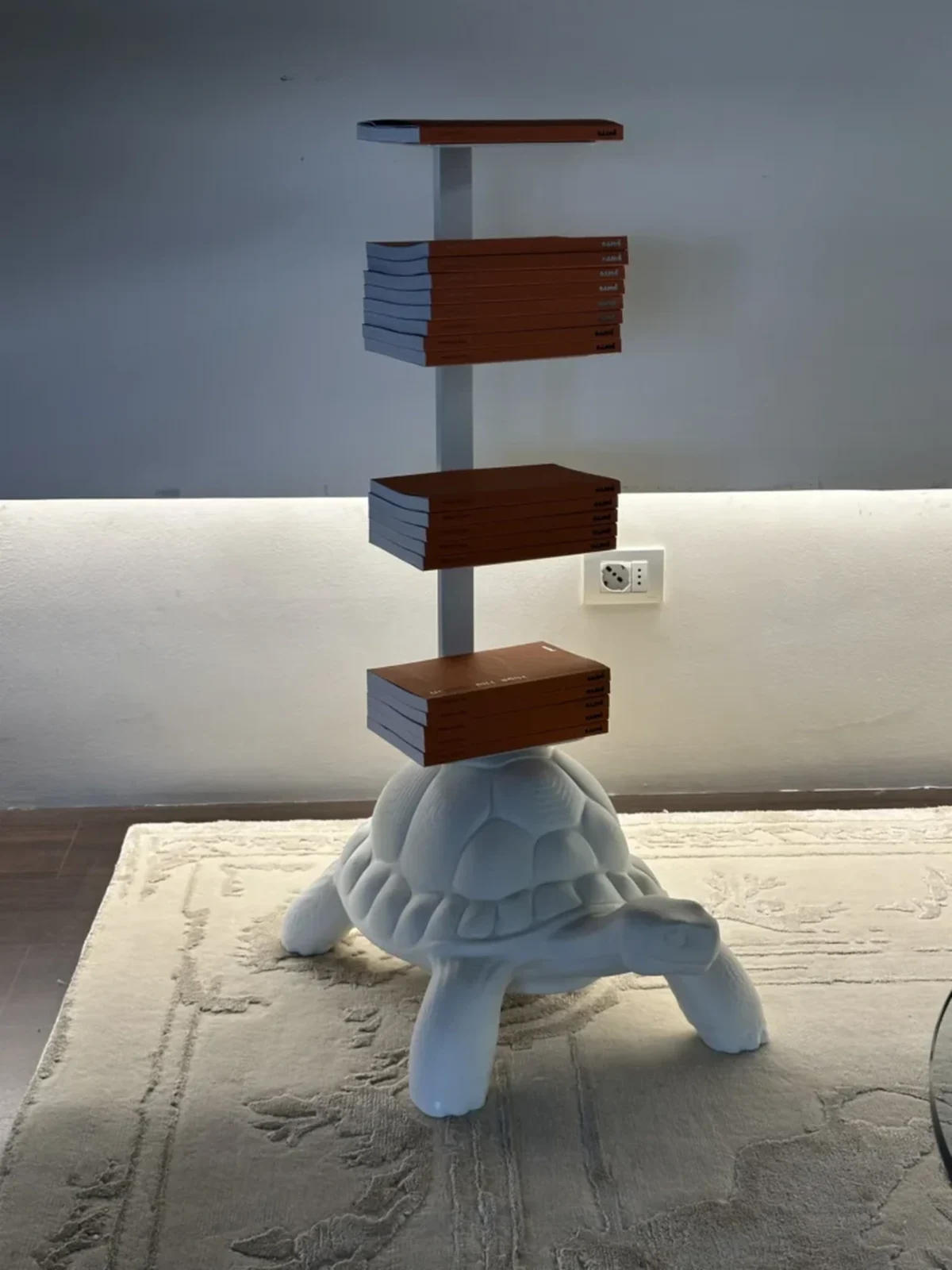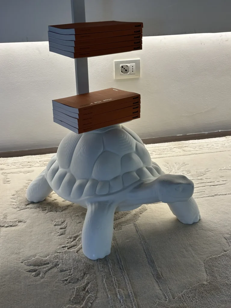 - Design: La Turtle Carry si ispira a una tartaruga, ma con un tocco ironico ed emozionale. La sua forma, che ricorda una tartaruga che trasporta il suo guscio, รจ una proposta creativa che funge da libreria e supporto multifunzione, ideale per contenere libri, accessori o piccoli oggetti decorativi.