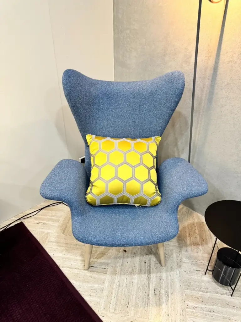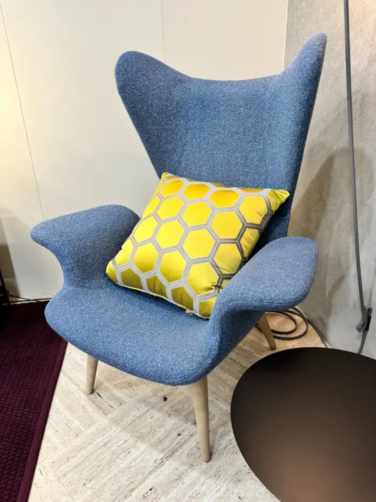 Longwave in colorazione Nordic Blueย di Moroso, รจ un arredo iconico che unisce lusso e comfort con un tocco vintage. Realizzata con espanso schiumato a freddo ignifugo, possiede una robusta struttura interna in acciaio e una base elegante in frassino verniciato charcoal. Questa poltrona, ideata dai Diesel Designers per Moroso, richiama il fascino retrรฒ degli anni โ€™60, reinterpretato in chiave contemporanea con linee fluide e un schienale alto avvolgente. Pensata come un angolo privato di comfort per la casa o l'ufficio, Longwave รจ perfetta per momenti di relax o per dedicarsi alla lettura.