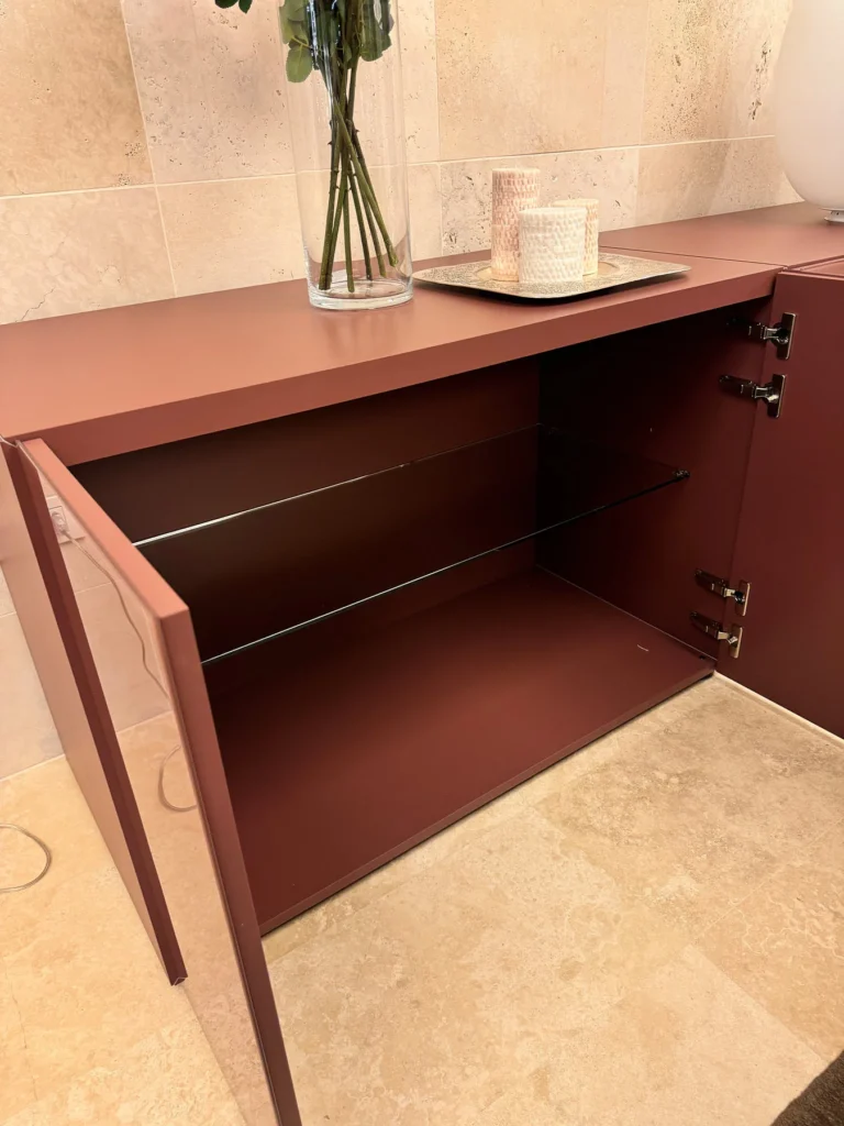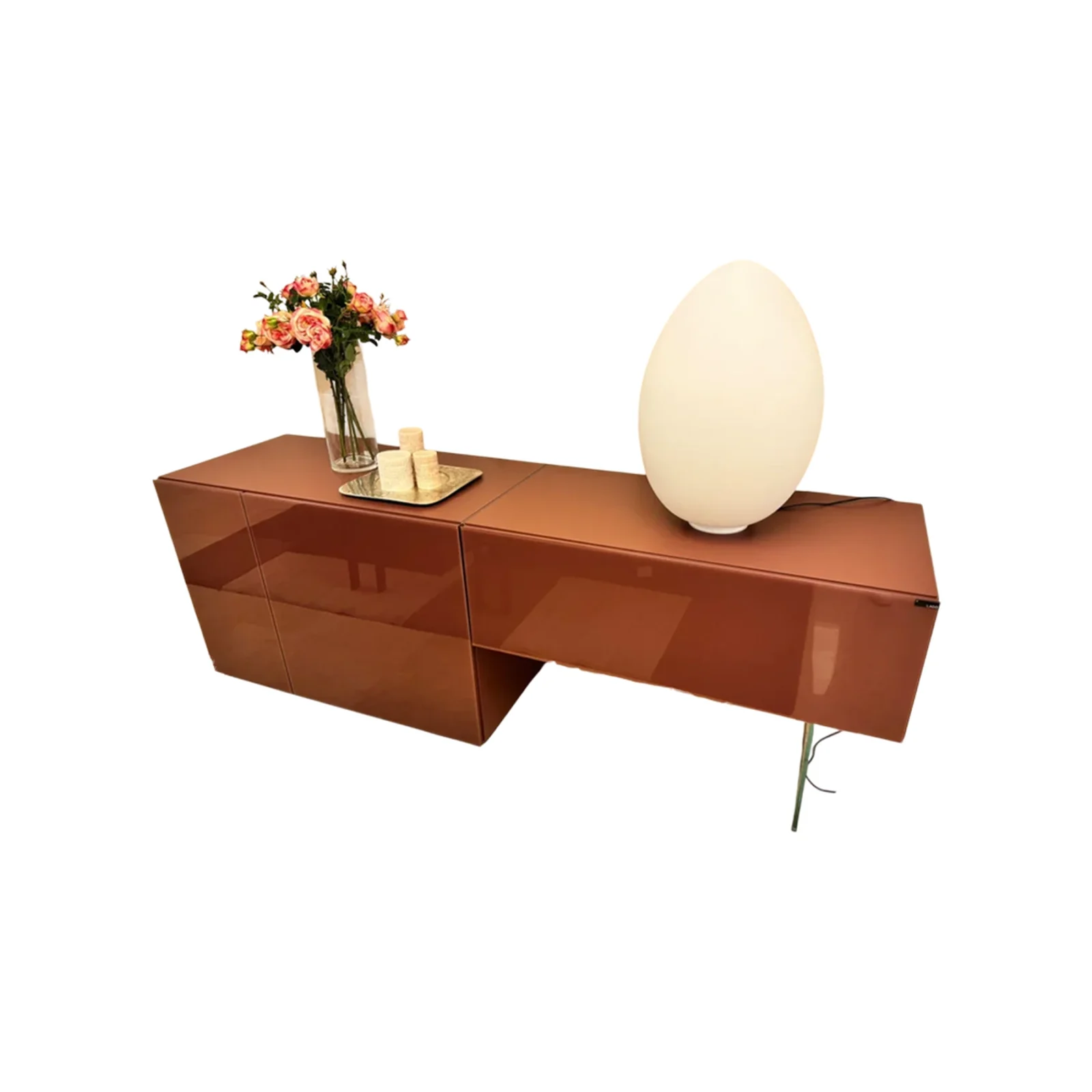 Il sistema 36e8 permette di creare composizioni uniche combinando diversi moduli con cassetti o ante a ribalta. Gli elementi possono essere sospesi o appoggiati a terra, offrendo una varietร  di configurazioni che si adattano a qualsiasi spazio e stile di arredamento. I moduli possono essere allineati o disallineati per un effetto visivo unico, aggiungendo profonditร  e interesse alla composizione. Il frontale della madia รจ disponibile in finitura vetro Lucido, per un effetto luminoso e contemporaneo che aggiunge un tocco di eleganza. Le madie possono essere dotate di piedini in vetro, che conferiscono leggerezza e una sensazione di sospensione, rendendo lโ€™arredo ideale per ambienti come salotti e camere da letto. L'asimmetria della struttura dona movimento e dinamismo alla madia, creando un effetto visivo interessante e moderno che si adatta perfettamente a interni contemporanei.