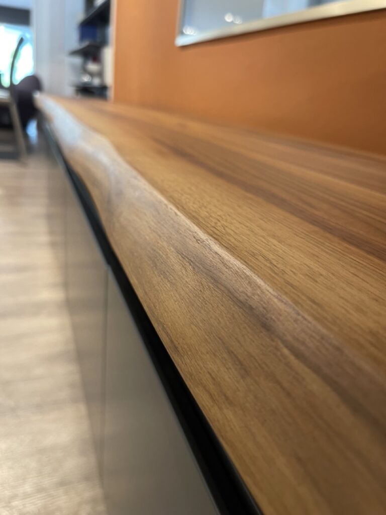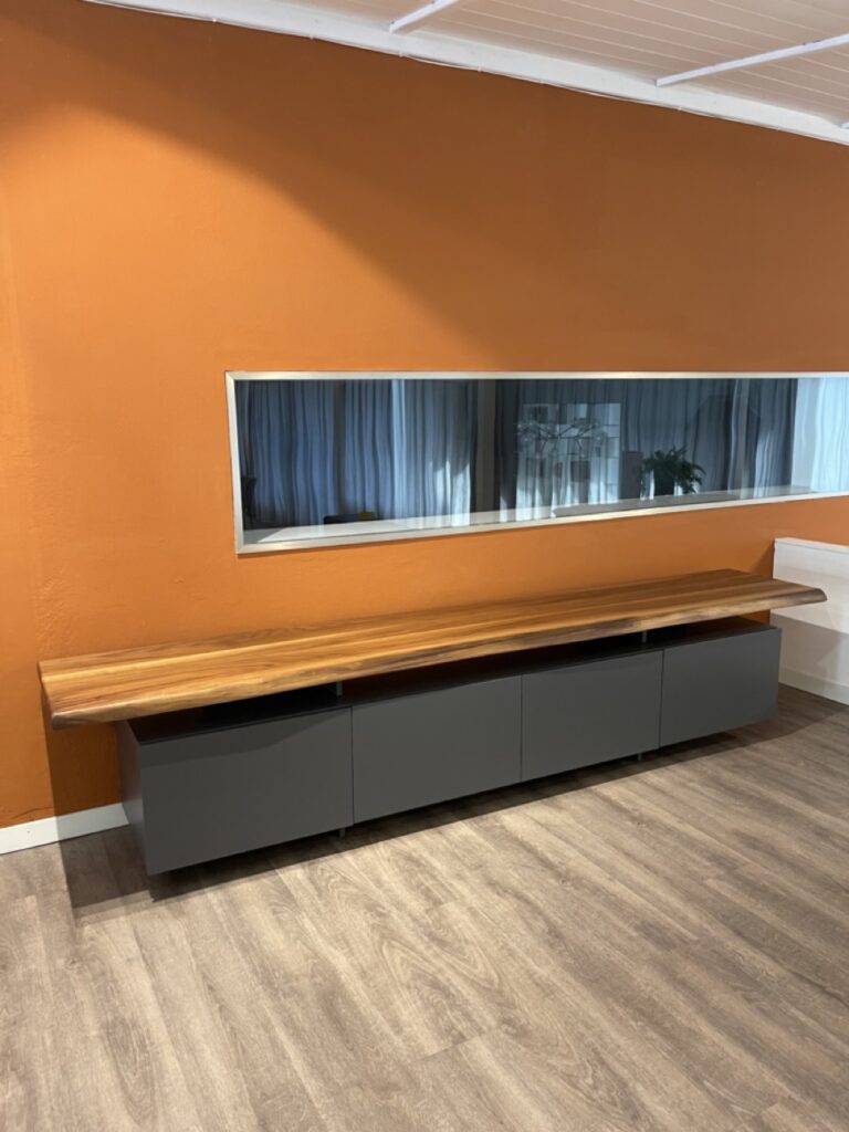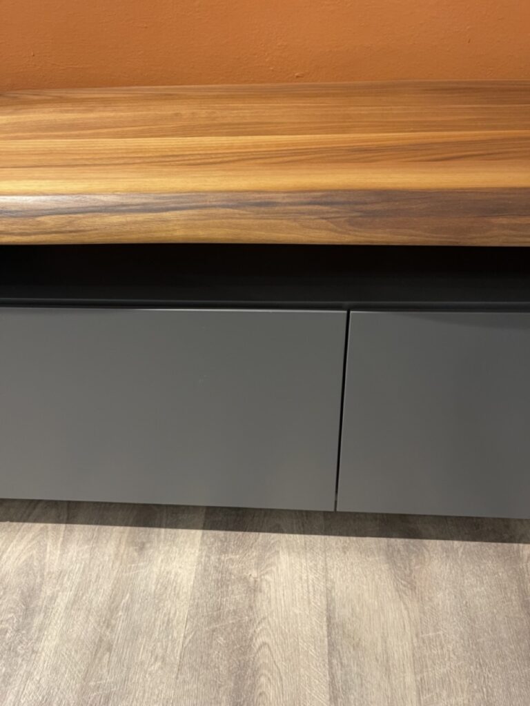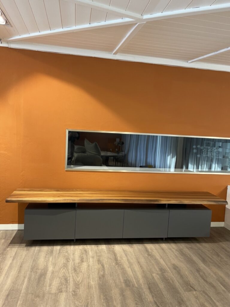 Il mobile porta TV di design Seneca รจ caratterizzata da ante lisce verniciate con disegno lineare, che ben si adatta allโarredo di un salotto di design contemporaneo e sobrio. Tra le ante e il piano del moderno porta TV che sembra sospeso, si crea un pratico scomparto a giorno, ideale per riporre gli oggetti di uso quotidiano, sempre a portata di mano.Il piano in legno con bordo irregolare aggiunge un tocco di naturalezza e un effetto materico che arricchisce l'estetica del mobile.