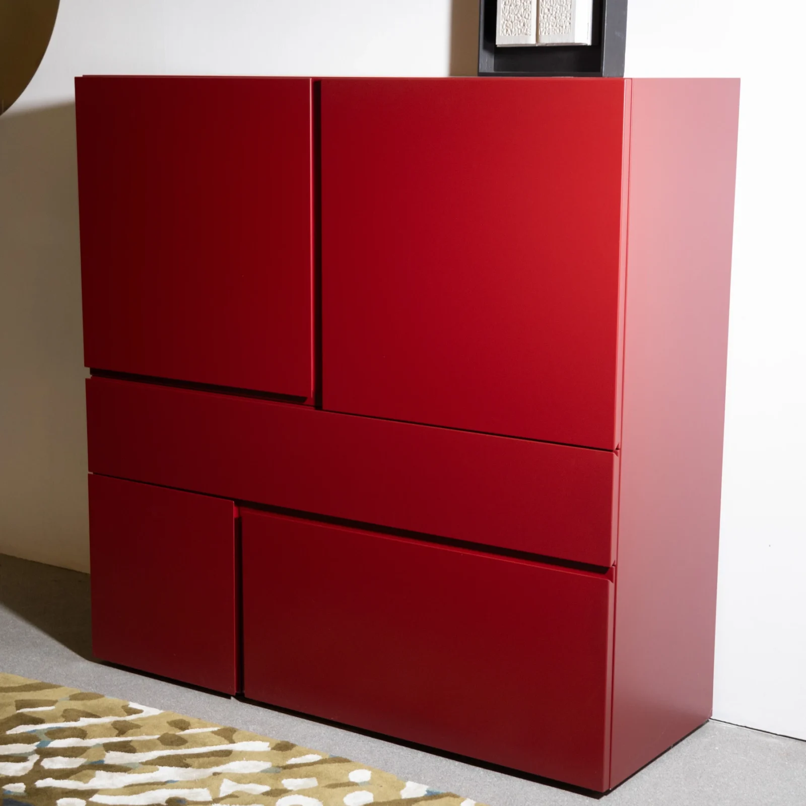 Quadra รจ un perfetto esempio di design moderno e funzionale. Con angoli netti e squadrati, questo mobile รจ caratterizzato da una pulizia delle linee e delle superfici che lo rende adatto a qualsiasi ambiente contemporaneo. Il suo punto di forza risiede nella lavorazione artigianale delle ante, che presentano un elegante gioco di gole ottenuto grazie allโabilitร del legno massello.