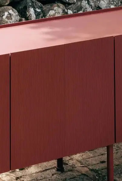 La struttura รจ realizzata interamente in alluminio verniciato, una scelta che garantisce soliditร , resistenza agli agenti esterni e facilitร di manutenzione. Inoltre, le superfici pulite e le linee essenziali rendono la madia visivamente leggera, pur mantenendo una forte presenza scenica.