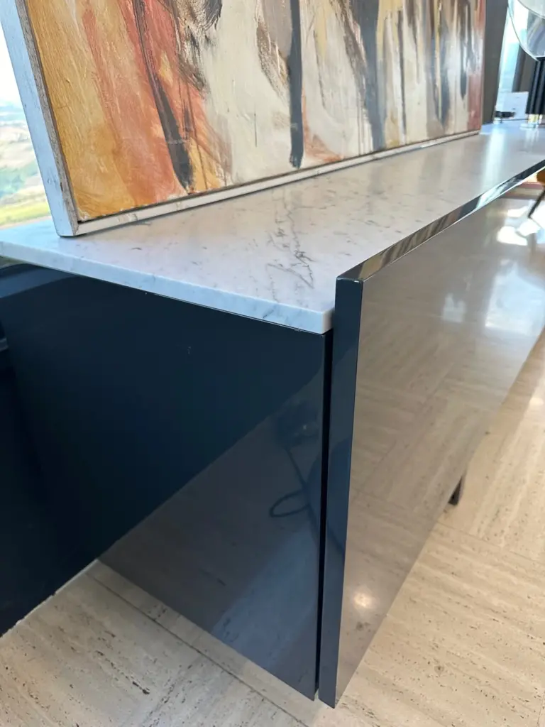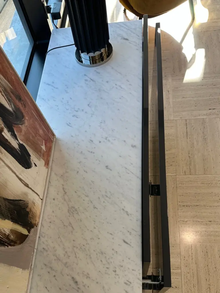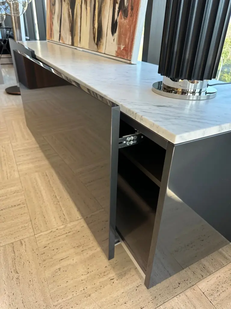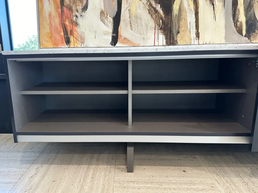 La madia Square รจ progettata con ante complanari, che offrono unโ€™estetica pulita e moderna. Le ante sono dotate di chiusura ammortizzata, garantendo una chiusura silenziosa e dolce. Disponibile con piano in marmo bianco di spessore 2 cm, la base della madia รจ alta 16.5 cm, realizzata con finitura canna di fucile, dotata di regolatori di livello per un perfetto posizionamento. Disponibile anche in versione bifacciale con retro pannello fisso, ideale per un utilizzo centrale in ambiente o come divisorio.