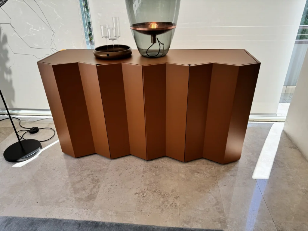 Contenitore dal design moderno, con struttura in MDF e legno listellare, disponibile in una laccatura opaca nella colorazione caramello. Gli... Leggi di piรน