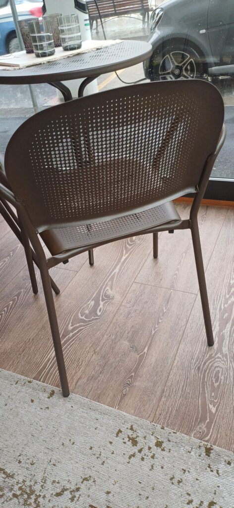 - Struttura in metallo grigio forato, che garantisce durata nel tempo e un’ottima resistenza agli agenti atmosferici.