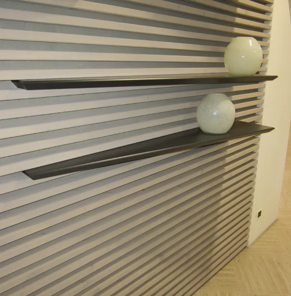 Ron Gilad disegna delle mensole dalla sagomatura perimetrale a diamante che penetrano la parete, mettendo in discussione la nostra percezione delle pareti e trasformandole così in oggetti che ci affascinano e conquistano. Mensola caratterizzata dalla forma rastremata e dalla sagomatura perimetrale a diamante, fa parte della collezione di arredi di Ron Gilad Grado°