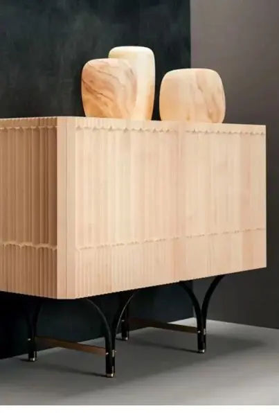 Il Mobile contenitore Guellย รจ disponibile con telaio in finitura acero naturale. Grazie alle sue dimensioni generose, 125 ร 55 ร 93 cm, si inserisce con naturalezza in living di lusso, lounge e spazi di design, diventando un vero punto focale dellโambiente.