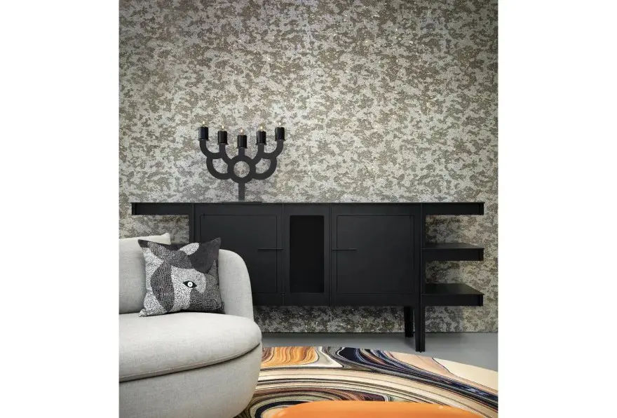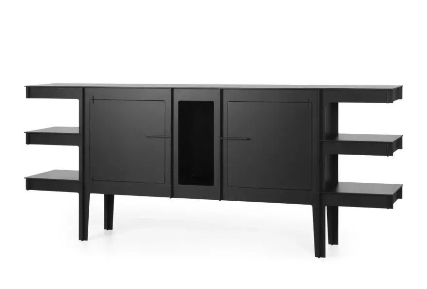 La finitura Black Diamond esalta le geometrie del mobile e ne rafforza il carattere deciso. Grazie al suo design scultoreo, il buffet si inserisce perfettamente in soggiorni moderni, ambienti di rappresentanza e spazi contract, diventando un vero elemento architettonico.