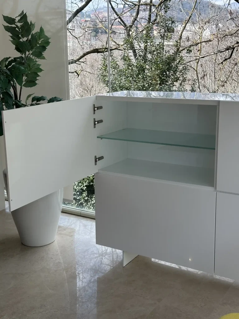 • Ripiano interno: Ogni anta รจ dotata di un ripiano in cristallo acidato, che esalta la luminositร  interna e offre un aspetto sofisticato.