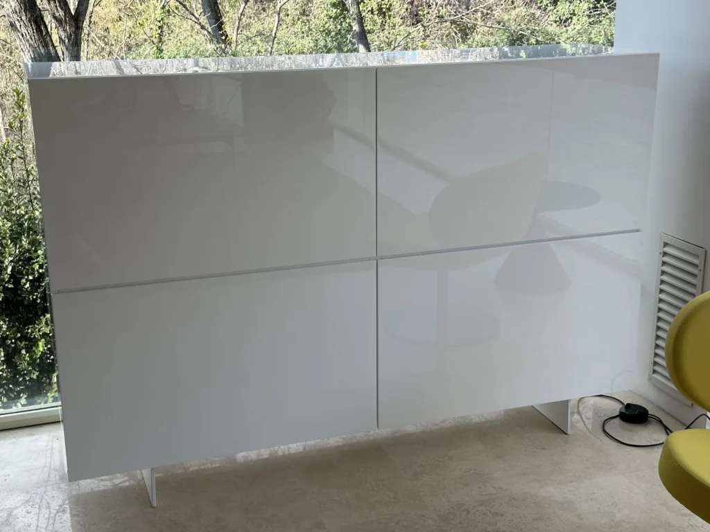 Il Mobile Uni 4 Ante firmato da Cappellini รจ un complemento d'arredo elegante e funzionale, perfetto per spazi moderni e contemporanei. Questo mobile a 4 ante si distingue per il suo design pulito e la finitura laccato lucido bianco, che aggiunge luminositร  all'ambiente. La struttura, robusta e ben progettata, rende questo mobile versatile, adattandosi a diverse esigenze di stoccaggio.