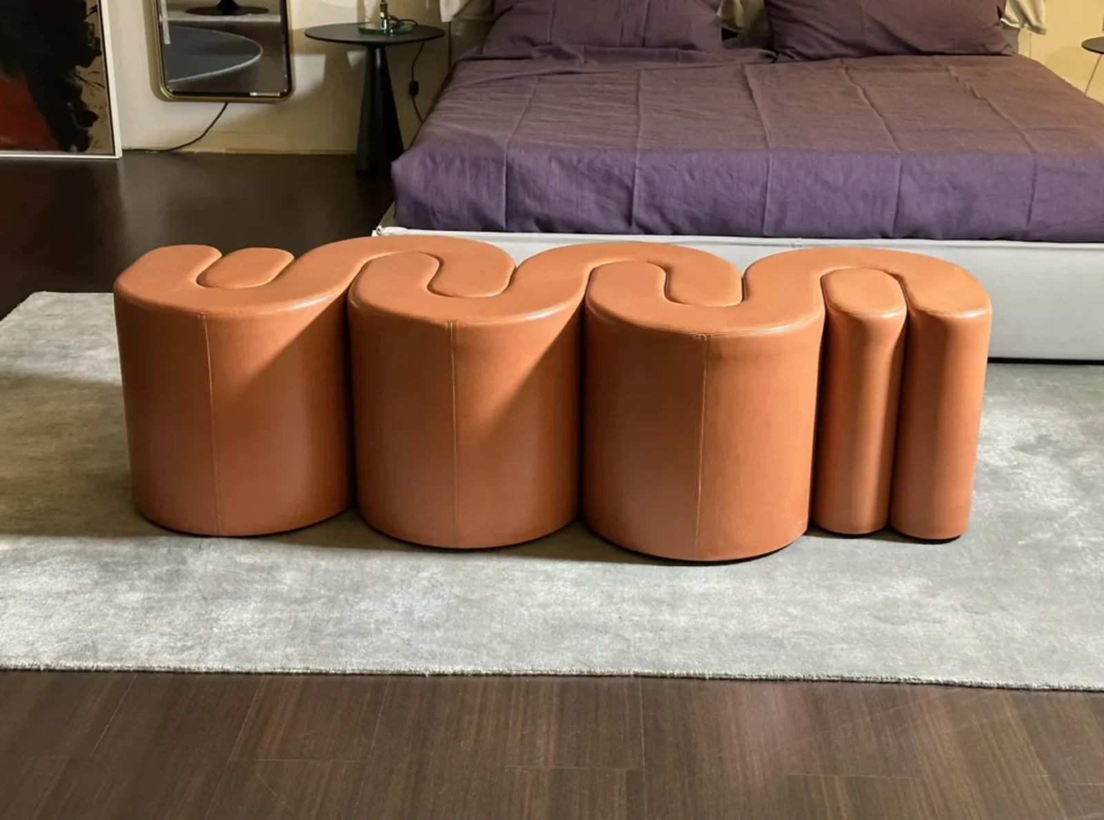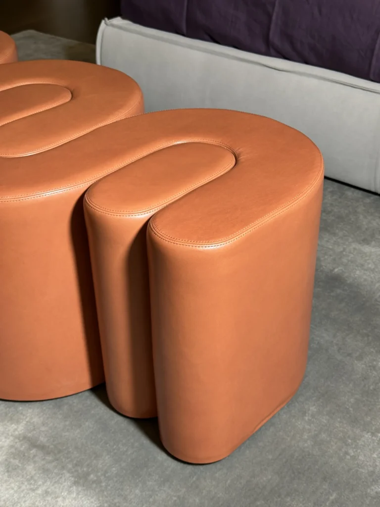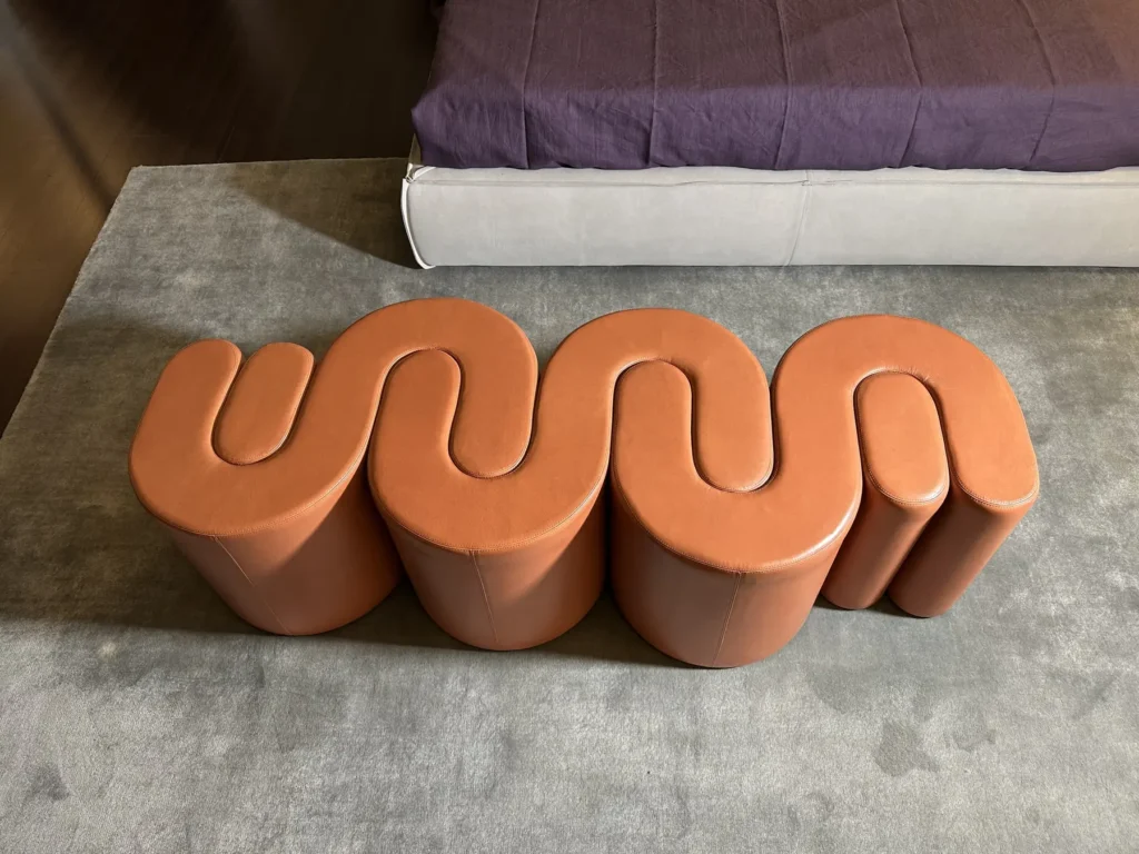 Design: Adel rielabora forme tradizionali in chiave moderna, con linee morbide e proporzioni equilibrate, creando un complemento d'arredo che puรฒ essere utilizzato come panca o pouf, in base alle esigenze dello spazio. Le finishes sorprendenti e audaci offrono una combinazione cromatica e di materiali unica.