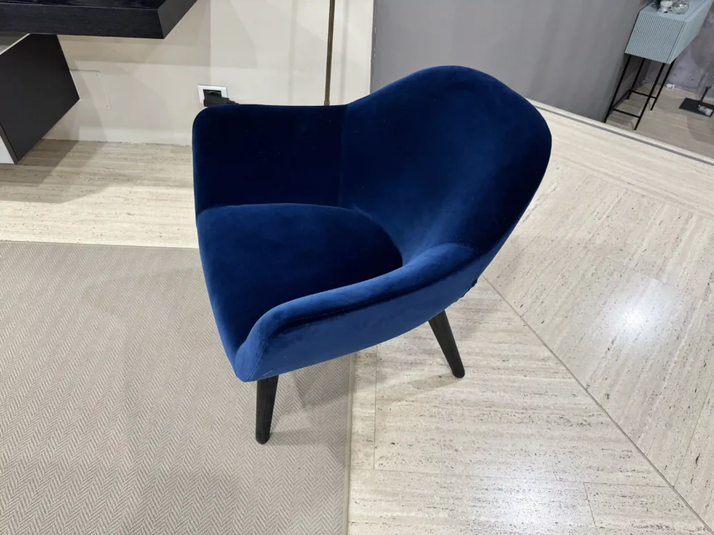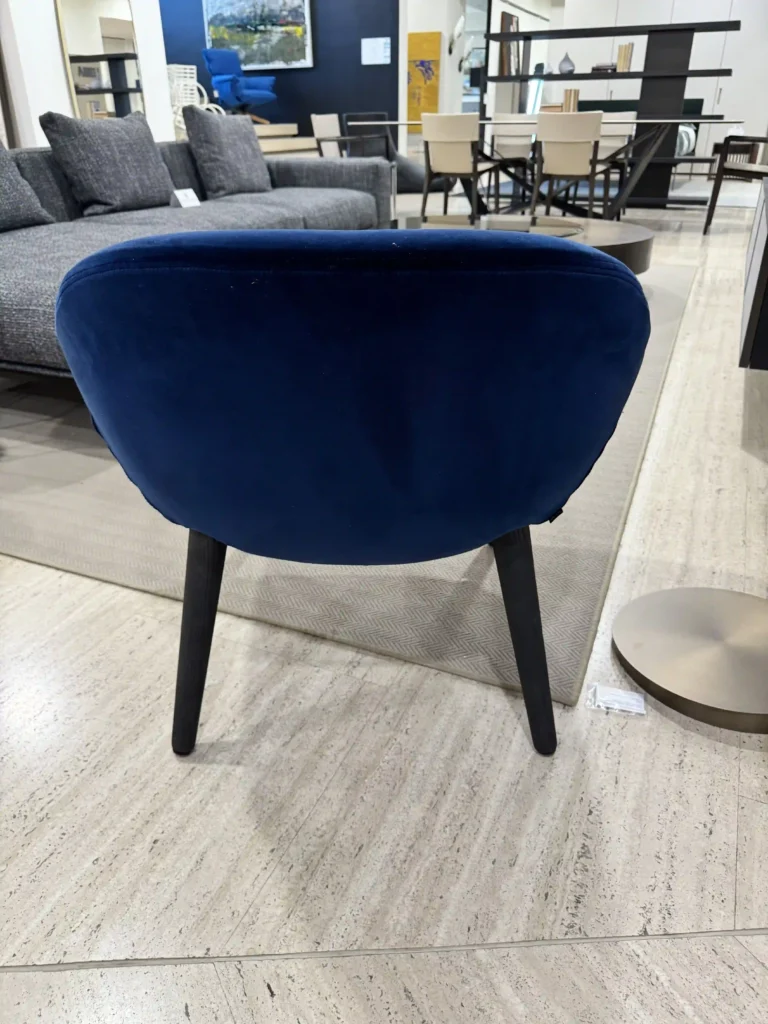 La Mad Chair, qui proposta con rivestimento in tessuto Persia colore Prussia e gambe in olmo nero, rappresenta lโevoluzione di una collezione pensata per unire comfort ed estetica in modo unico. Le sue linee armoniche e avvolgenti la rendono perfetta sia per il living che per la zona notte, arricchendo qualsiasi spazio con eleganza e stile.