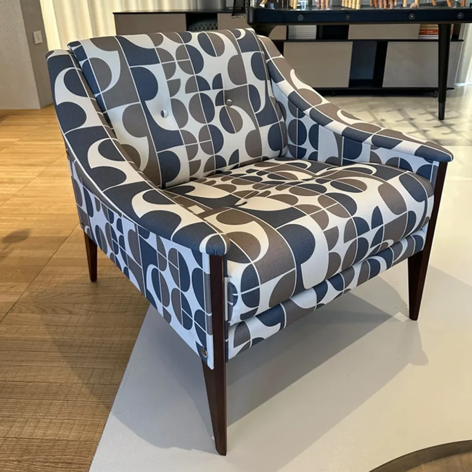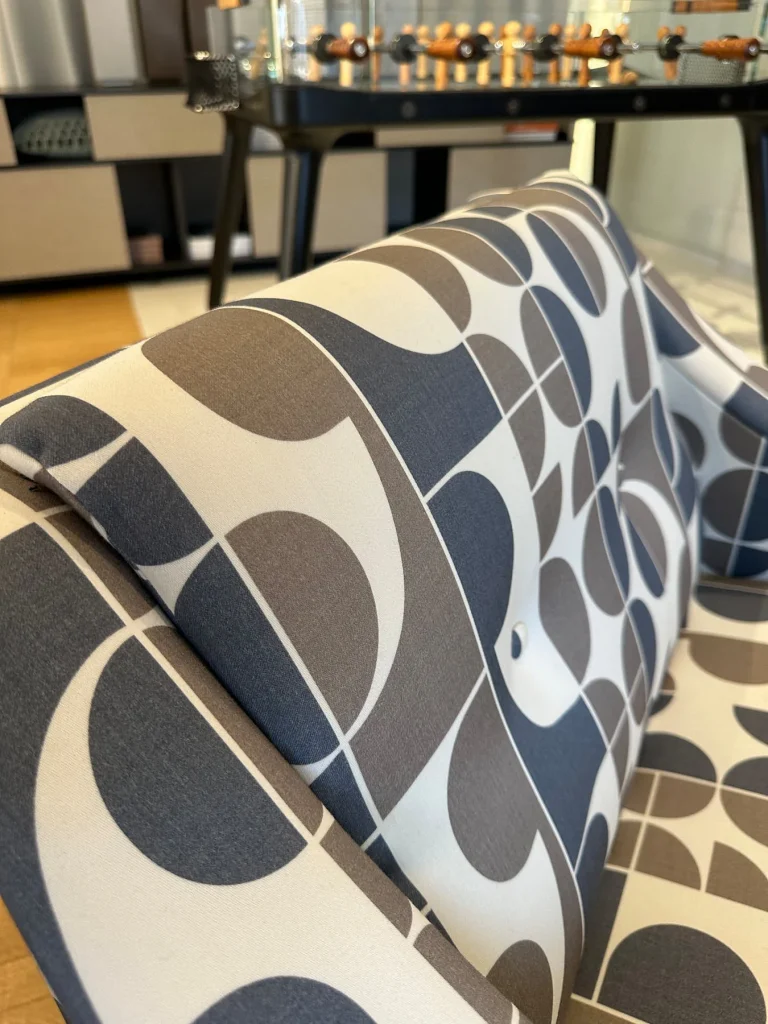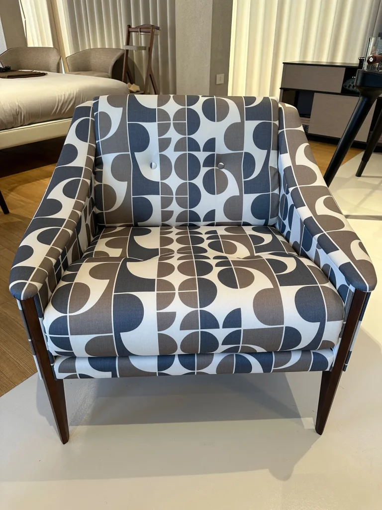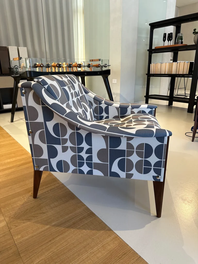 Disegnata da Gio Ponti nel 1965, รจ un capolavoro di design che incarna i piรน importanti principi progettuali del Maestro. La struttura รจ realizzata in noce canaletto e la poltrona รจ disponibile in tessuto di raso di lana stampato Redevance, il cui pattern grafico รจ stato disegnato dallo stesso Ponti.
