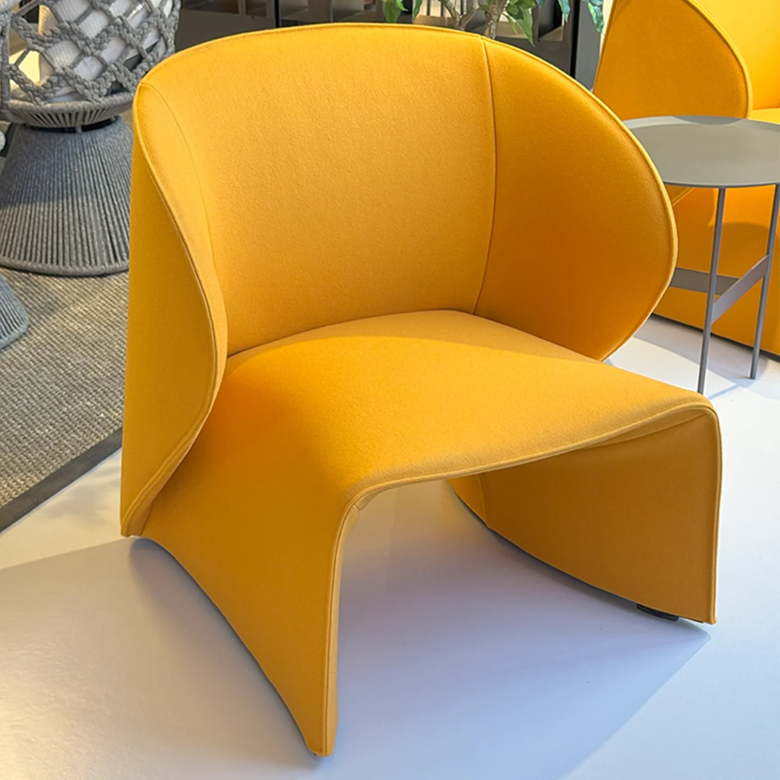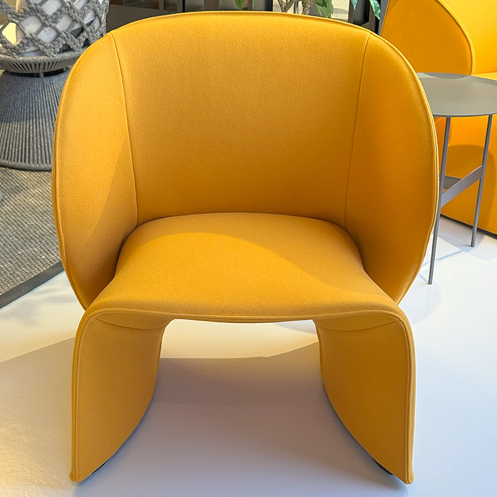 - Materiale: Rivestita in feltro tagliato al vivo color Ocra, la poltrona Narinari presenta dettagli e finiture impeccabili, che esaltano la qualitร dei materiali e la cura artigianale nella sua realizzazione.