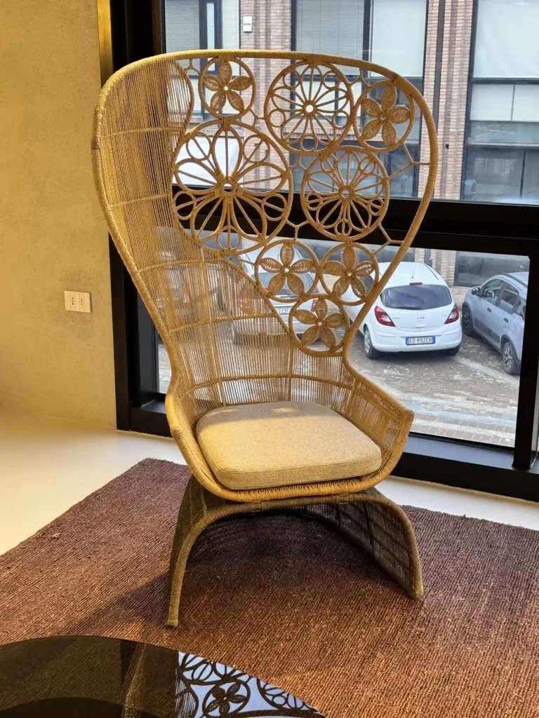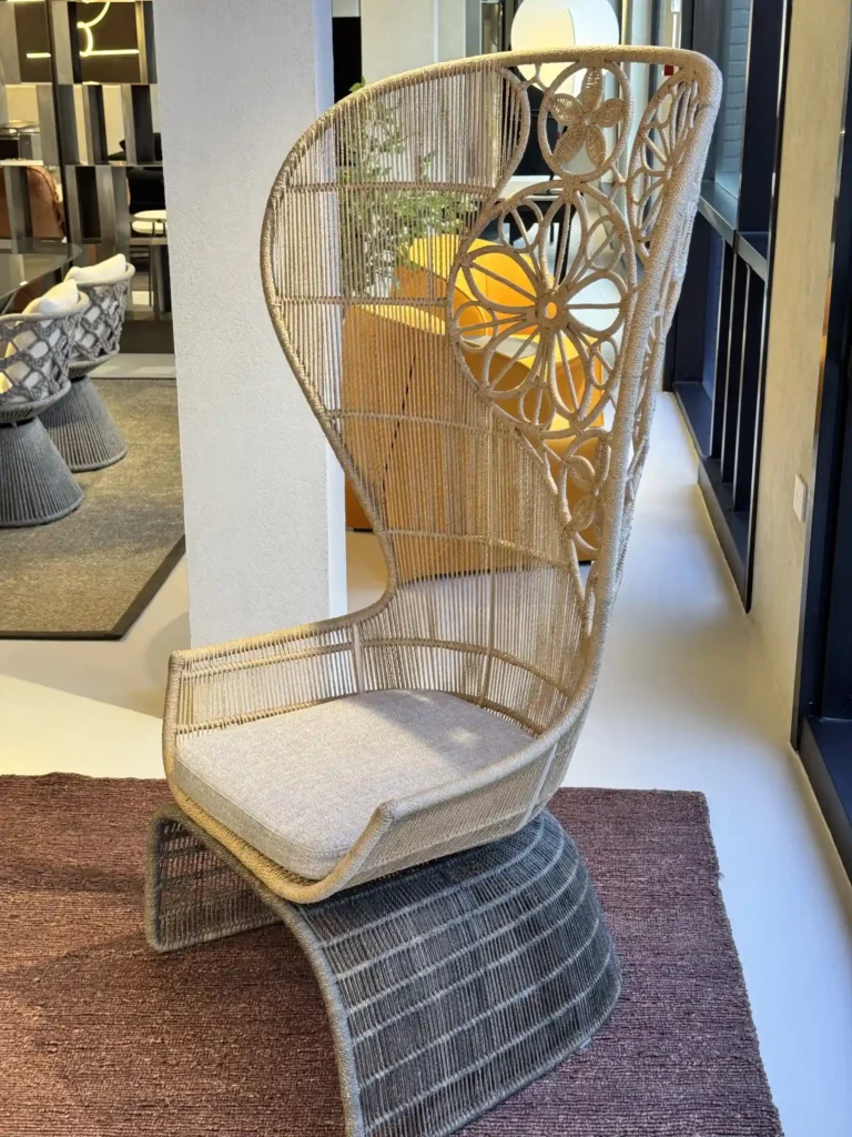 La poltrona outdoor Crinoline di B&B Italia, progettata da Patricia Urquiola, รจ un pezzo di arredo elegante e sofisticato che unisce design sinuoso e funzionalitร . Ispirata alle lunghe gonne del passato, la sua struttura affascinante si caratterizza per l'intreccio in fibra naturale e polietilene, creando un effetto avvolgente che rende questa poltrona perfetta per ambienti outdoor.