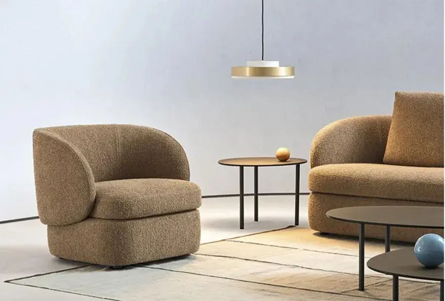 La versione proposta รจ rivestita in tessuto Made F, codice colore 21, una finitura elegante che valorizza la struttura imbottita e sottolinea il carattere contemporaneo del progetto. Per questo motivo, la Poltrona Sobi rappresenta una scelta ideale per chi desidera un arredo di design confortevole e raffinato.