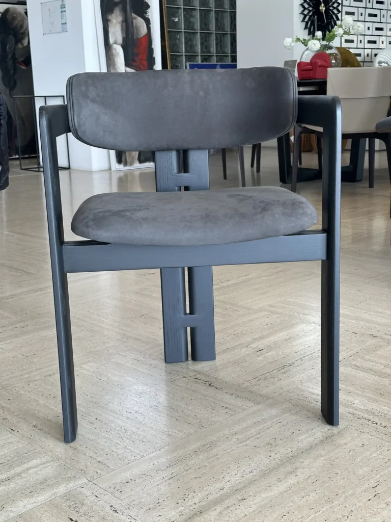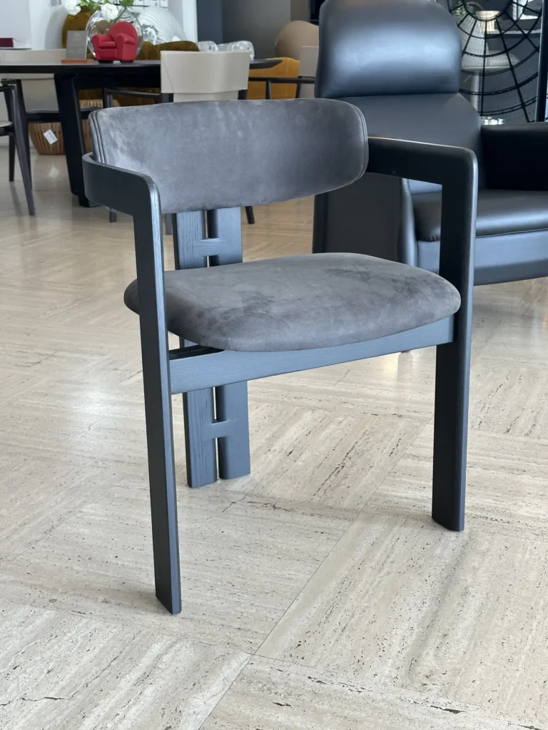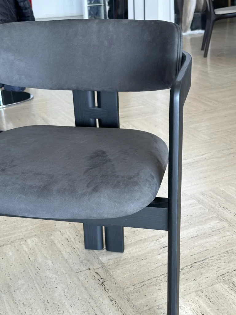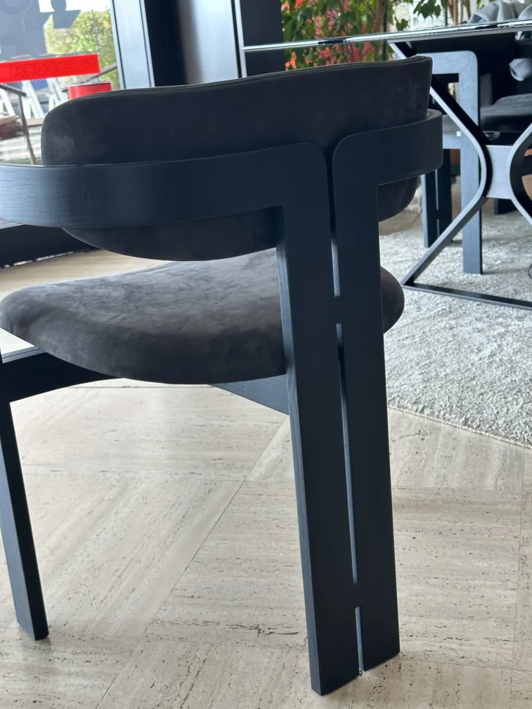 - Realizzata in legno massello curvato, disponibile in frassino tinto nella finitura nero a poro aperto.