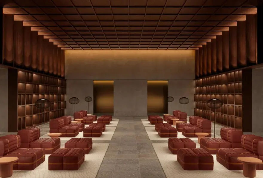 Il rivestimento nella finitura Spectrum Walnut aggiunge calore e profonditร visiva, valorizzando il carattere iconico del progetto.