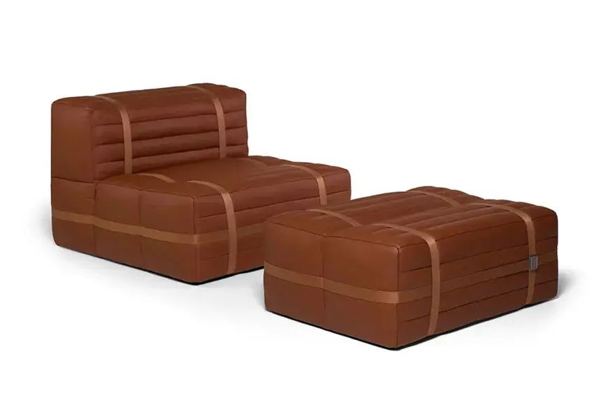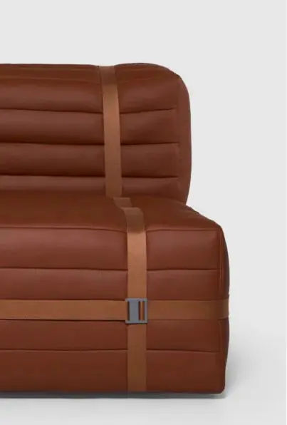 I cuscini imbottiti e generosi creano una seduta accogliente e ben supportata. Allo stesso tempo, le cinghie resistenti che li tengono uniti definiscono un dettaglio distintivo e funzionale. Ogni elemento รจ studiato per garantire equilibrio tra forma e praticitร .