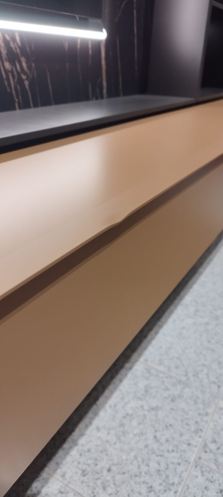 - Struttura solida: Realizzata in particelle di legno con finitura laccata opaca, assicura durabilitร e un look moderno. E' presente una leggera ammaccatura sulla maniglia.