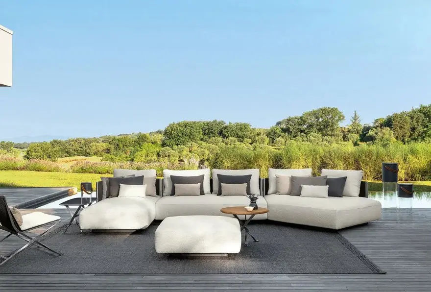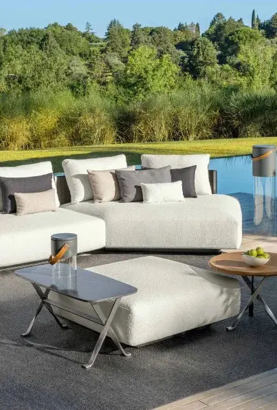 Caratterizzato da un design pulito e raffinato, il pouf si distingue per la qualitร  dei materiali e per lโ€™attenzione ai dettagli. Il rivestimento in tessuto C111 Castle White dona luminositร  e leggerezza visiva. Inoltre, questa finitura lo rende perfetto sia per ambienti interni sia per spazi outdoor coperti.