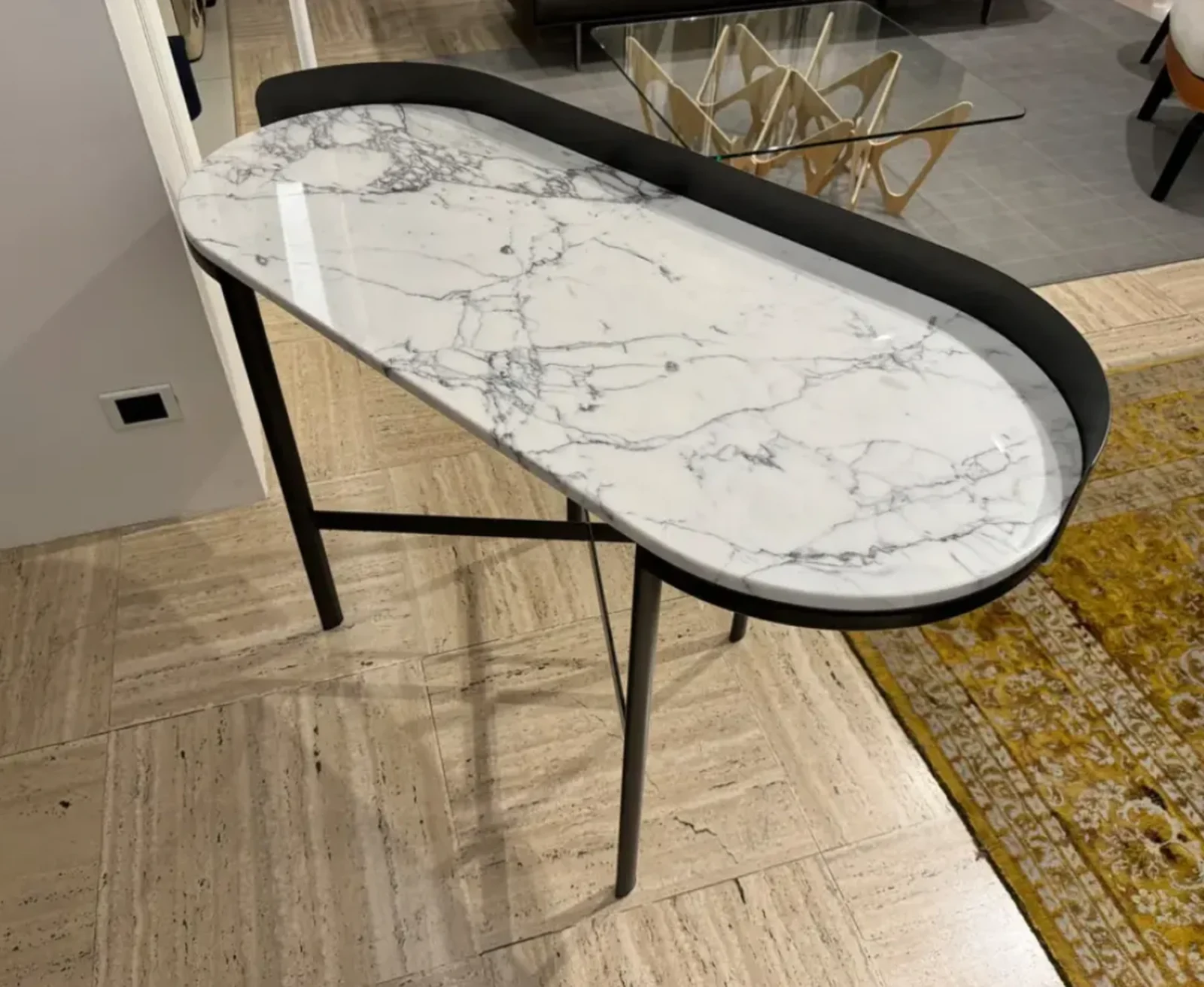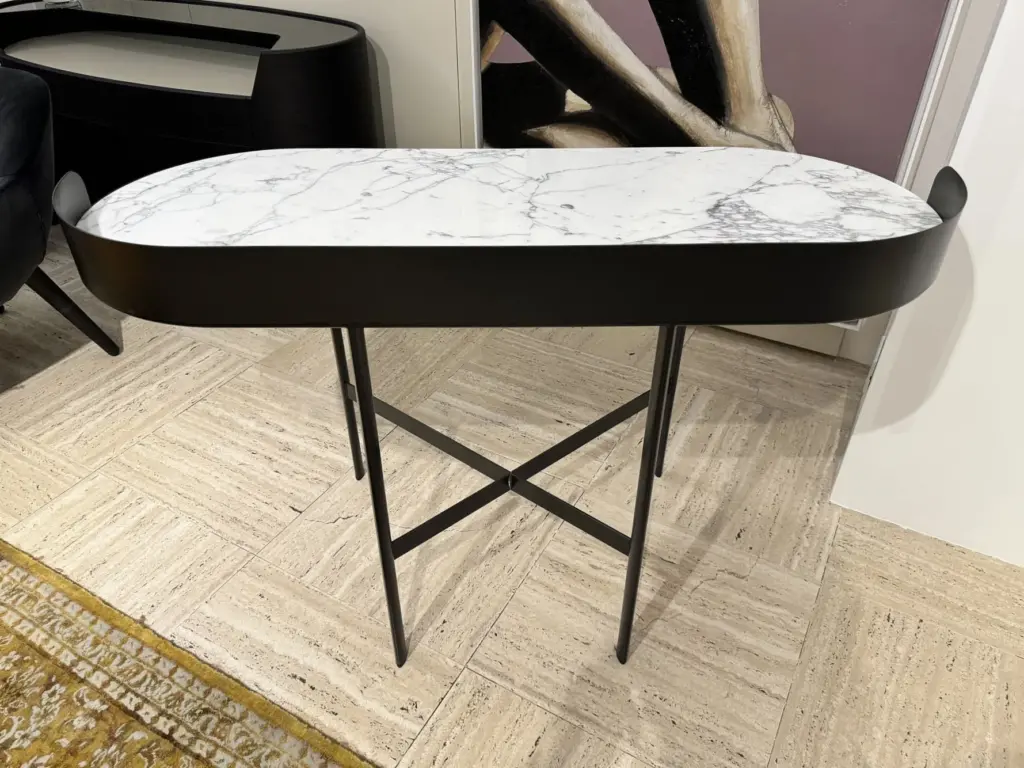 Lo scrittoio Asia si distingue per le sue linee fluide e leggere, che creano un equilibrio perfetto tra eleganza e soliditร . Le curve delicate del design conferiscono un aspetto contemporaneo, adattabile a vari stili di arredamento. Il piano รจ realizzato in marmo Calacatta, un materiale pregiato noto per le sue venature delicate e la superficie liscia e lucida. Questo marmo conferisce allo scrittoio un aspetto sofisticato, rendendolo un pezzo distintivo e di classe in qualsiasi ambiente. La base dello scrittoio รจ realizzata in metallo, garantendo stabilitร , oltre a conferire un tocco moderno che contrasta elegantemente con la delicatezza del marmo. Il piano generoso offre ampio spazio per lavorare, scrivere o studiare in tutta comoditร . Lo scrittoio รจ dotato di un foro passacavi, che consente di organizzare i cavi dei dispositivi elettronici, mantenendo la superficie pulita e ordinata.