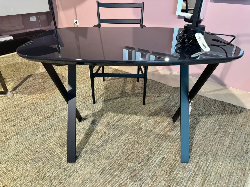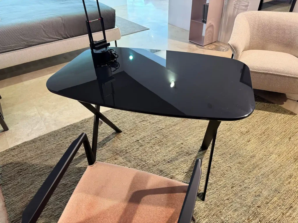 Burt, disegnato da Andrea Parisio per Meridiani, si distingue per un design essenziale, perfetto per ambienti contemporanei. Il basamento รจ realizzato in metallo verniciato opaco black, che dona una presenza sobria. Il piano, in legno, รจ disponibile nella colorazione Nero, conferendo un aspetto moderno che si integra perfettamente sia in contesti di home office che in studi professionali.