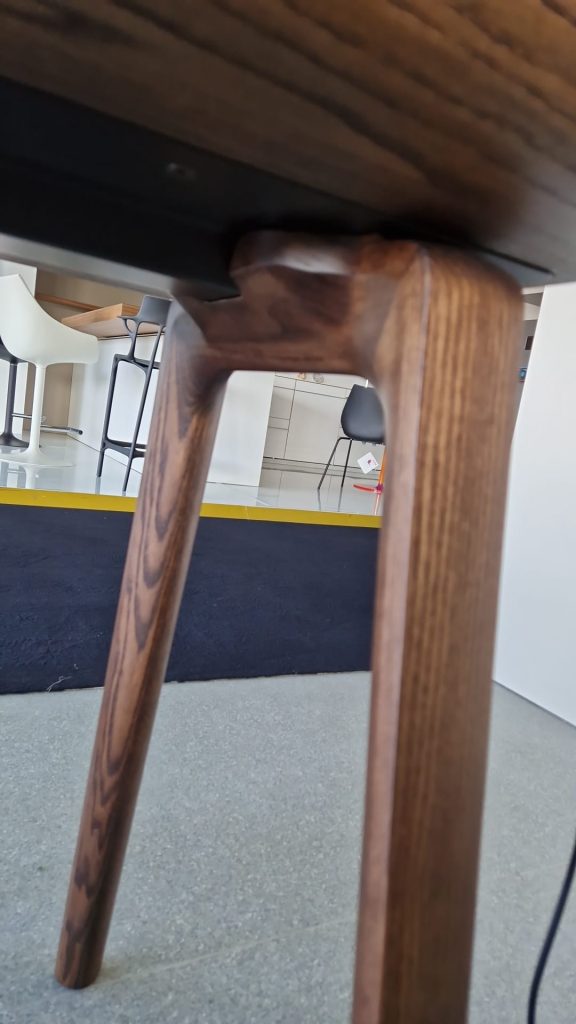 - Realizzato in frassino tinto moka, con base solida e dettagli curati.